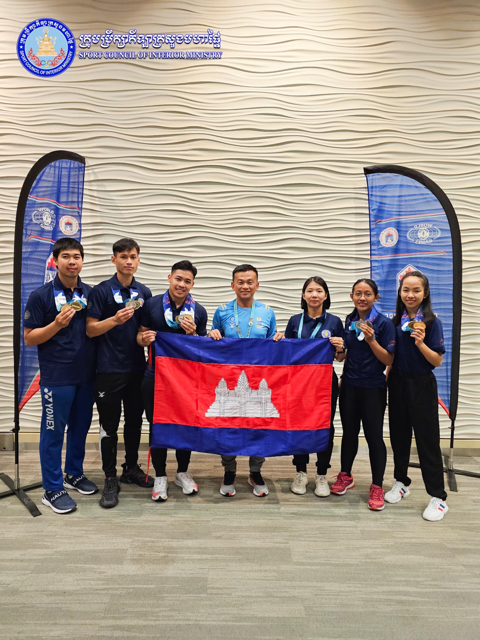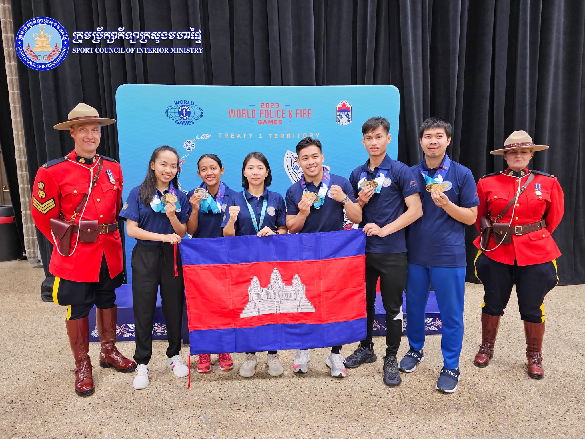 កាណាដា៖ នៅថ្ងៃទី០២ ខែសីហា ឆ្នាំ២០២៣ យោងតាមការចុះផ្សាយរបស់ ក្រុមប្រឹក្សាកីឡាក្រសួងមហាផ្ទៃ បានឱ្យដឹងថា ក្រុមកីឡាករ កីឡាការិនីការ៉ាតេកម្ពុជា (ក្រសួងមហាផ្ទៃ) ដណ្តើមបានមេដាយសរុបចំនួន ០៨គ្រឿង ក្នុងនោះមានមេដាយមាស០៣គ្រឿង ប្រាក់០៣គ្រឿង និងសំរឹទ្ធ០២គ្រឿង ពីការប្រកួតក្នុងព្រឹត្តិការណ៍កីឡានគរបាល និងកងពន្លត់អគ្គិភ័យពិភពលោក លើកទី២០ ឆ្នាំ២០២៣ (the 20th World Police & Fire Games 2023) នៅទីក្រុង Winnipeg ប្រទេសកាណាដា។