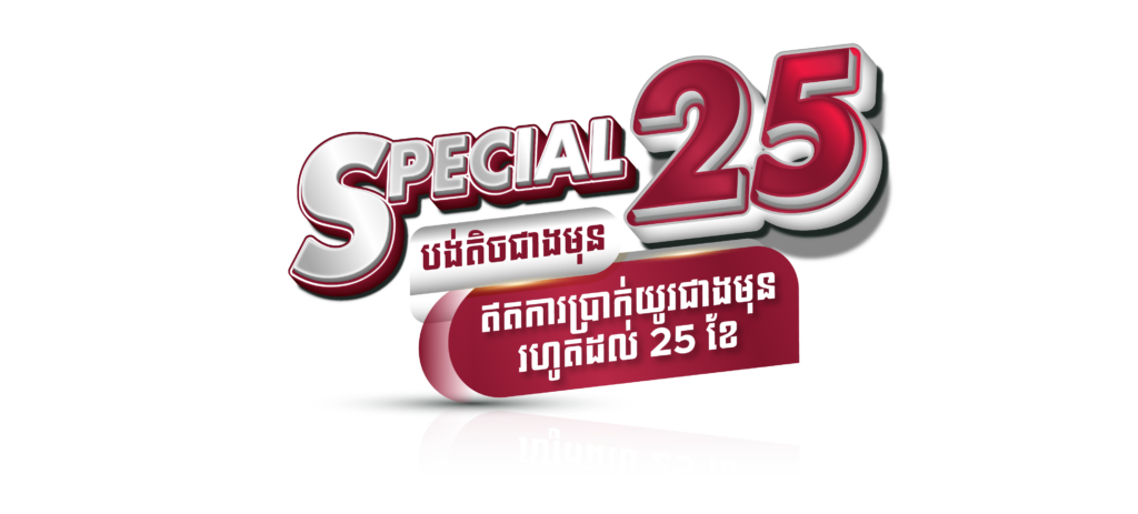 • ប្រូម៉ូសិន «Special 25» បង់តិចជាមុន ឥតការប្រាក់យូរជាងមុន រហូតដល់ ២៥ខែ។