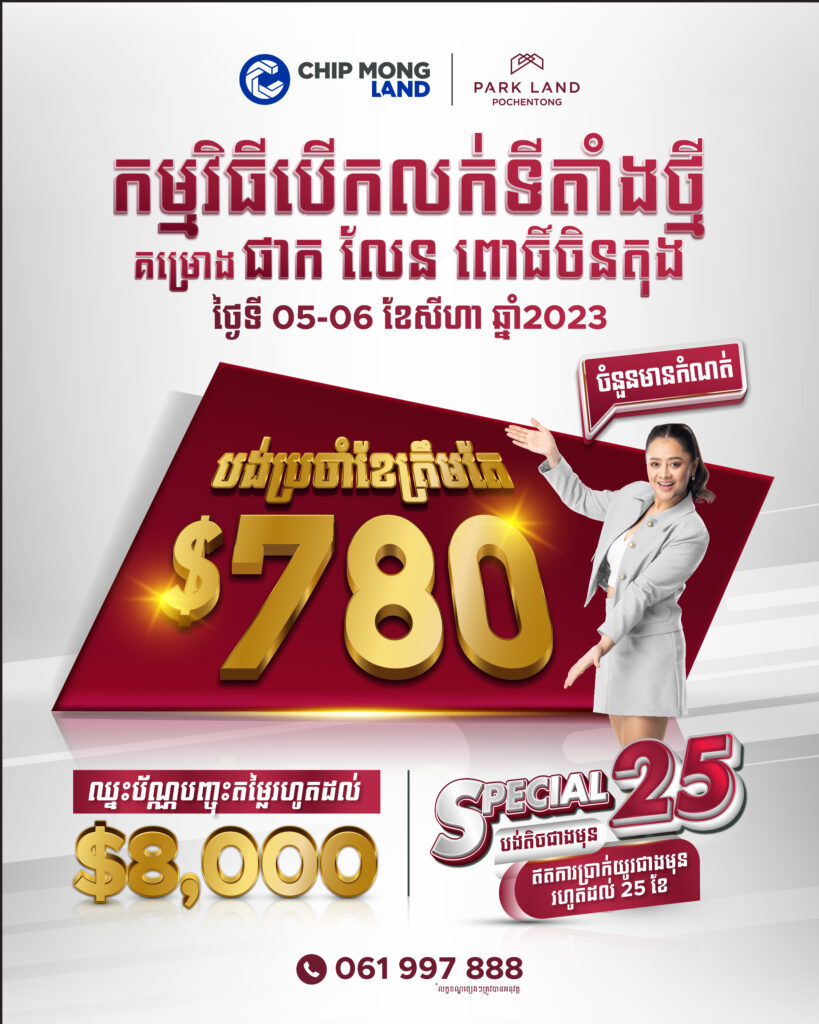 • បង់ប្រចាំខែត្រឹមតែ ៧៨០ដុល្លារ/ខែ (ចំនួនមានកំណត់)