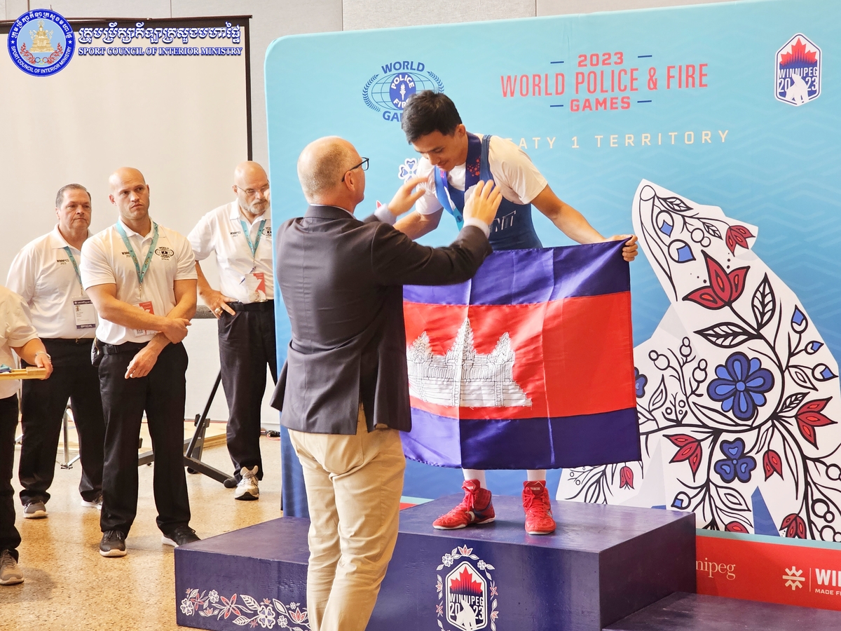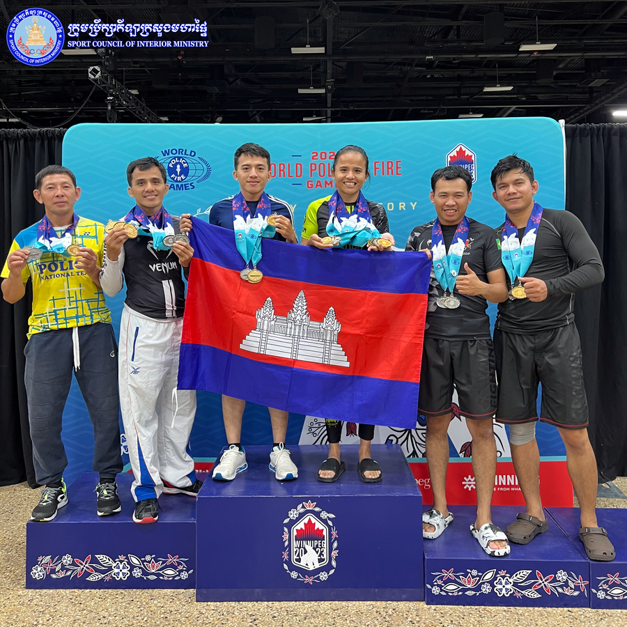 រាជធានីភ្នំពេញ៖ នៅថ្ងៃទី០៧ ខែសីហា ឆ្នាំ២០២៣ យោងតាមការចុះផ្សាយរបស់ ក្រសួងព័ត៌មាន បានឱ្យដឹងថា អត្តពលិកនគរបាលក្រសួងមហាផ្ទៃកម្ពុជា ដណ្តើមបានមេដាយមាស ប្រាក់ និងសំរឹទ្ធសរុបចំនួន ៧១ គ្រឿង នៅក្នុងការប្រកួតកីឡានគរបាល និងកងពន្លត់អគ្គិភ័យពិភពលោក លើកទី២០ ឆ្នាំ២០២៣ (The 20th World Police & Fire Games 2023) នៅទីក្រុង Winnipeg ប្រទេសកាណាដា ខណៈព្រឹត្តិការណ៍ពិភពលោកមួយនេះបានបញ្ចប់ជាស្ថាពរហើយ កាលពីថ្ងៃទី០៦ ខែសីហា ឆ្នាំ២០២៣។