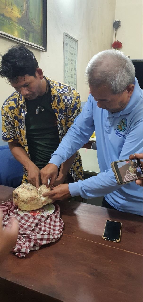 បុរសម្នាក់រើសបានដុំថ្មម្យ៉ាង ដែលអះអាងថាជាកម្អួតត្រីបាឡែន ស្ថិតនៅឆ្នេរជំទាវម៉ៅ ក្រុងព្រះសីហនុ ត្រូវបានមន្ត្រីជំនាញយកទៅធ្វើតេស្តDNA ដើម្បីបញ្ជាក់ការពិត