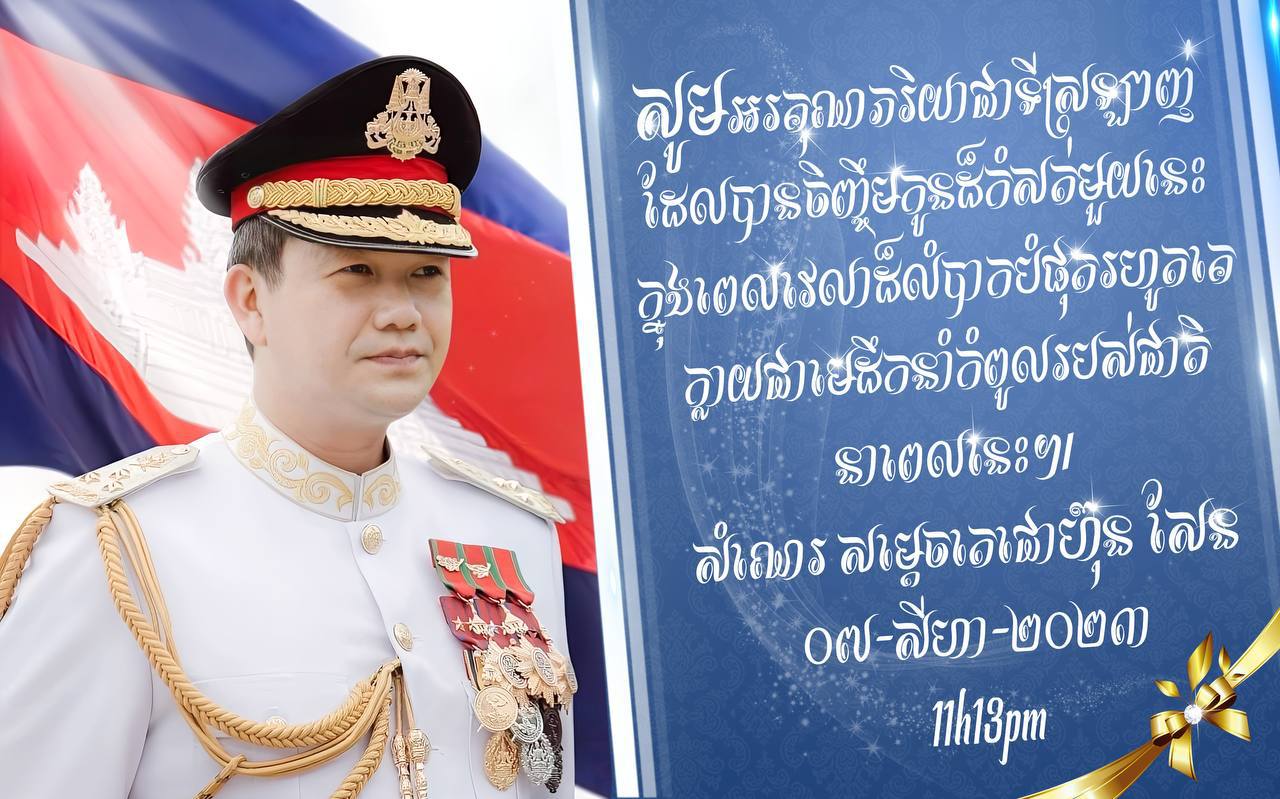 ពេលនេះខ្ញុំបន្តជានាយករដ្ឋមន្ត្រី១៣ថ្ងៃទៀត បន្ទាប់ទៅខ្ញុំនឹងឡើងឋានៈទៅជាឪពុកនាយករដ្ឋមន្ត្រីម្តង។ មិនទាន់ចប់ត្រឹមនេះទេ ខ្ញុំនឹងបន្តការងារក្នុងមុខនាទីផ្សេងទៀតយ៉ាងតិចត្រឹមឆ្នាំ២០៣៣ ដែលពេលនោះខ្ញុំនឹងបំពេញការងារជាងកន្លះសតវត្សរ៍។ សូមអរគុណភរិយាជាទីស្រឡាញ់ ដែលបានចិញ្ចឹមកូនដ៏កំសត់មួយនេះ ក្នុងពេលវេលាដ៏លំបាកបំផុតរហូតគេ ក្លាយជាមេដឹកនាំកំពូលរបស់ជាតិ នាពេលនេះ៕