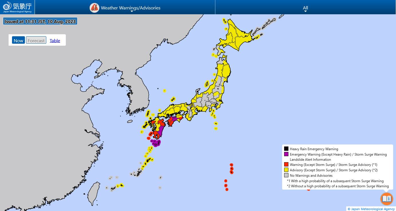 ទីភ្នាក់ងារជាតិ ឧតុនិយមជប៉ុនបានចេញសេចក្តីព្រមានអំពីព្យុះត្រូពិចខាន់ណុន (Khanun) ដែលកំពុងរំកិលខ្លួន មកកាន់ទិសខាងជើង ហើយអាចបង្កផលប៉ះពាល់ដល់ផ្នែកនិរតីនៃប្រទេសជប៉ុន ជាពិសេសតំបន់ Kyushu និងតំបន់ Shikoku ។ ឥទ្ធិពលព្យុះនេះបានធ្វើអោយមានភ្លៀងធ្លាក់ខ្លាំងនៅផ្នែកខ្លះនៃតំបន់ Kyushu និង Shikoku ហើយនឹងអាចបណ្តាលឱ្យមានភ្លៀងធ្លាក់នៅផ្នែកជាប់មហាសមុទ្រប៉ាស៊ីហ្វិកផងដែរ។ អាជ្ញាធរបានចេញ សេចក្តីព្រមានពាក់ព័ន្ធនឹងការរអិលបាក់ដី ទឹកជំនន់ ខ្យល់កន្ត្រាក់ និងទឹករលកខ្ពស់ៗ ។