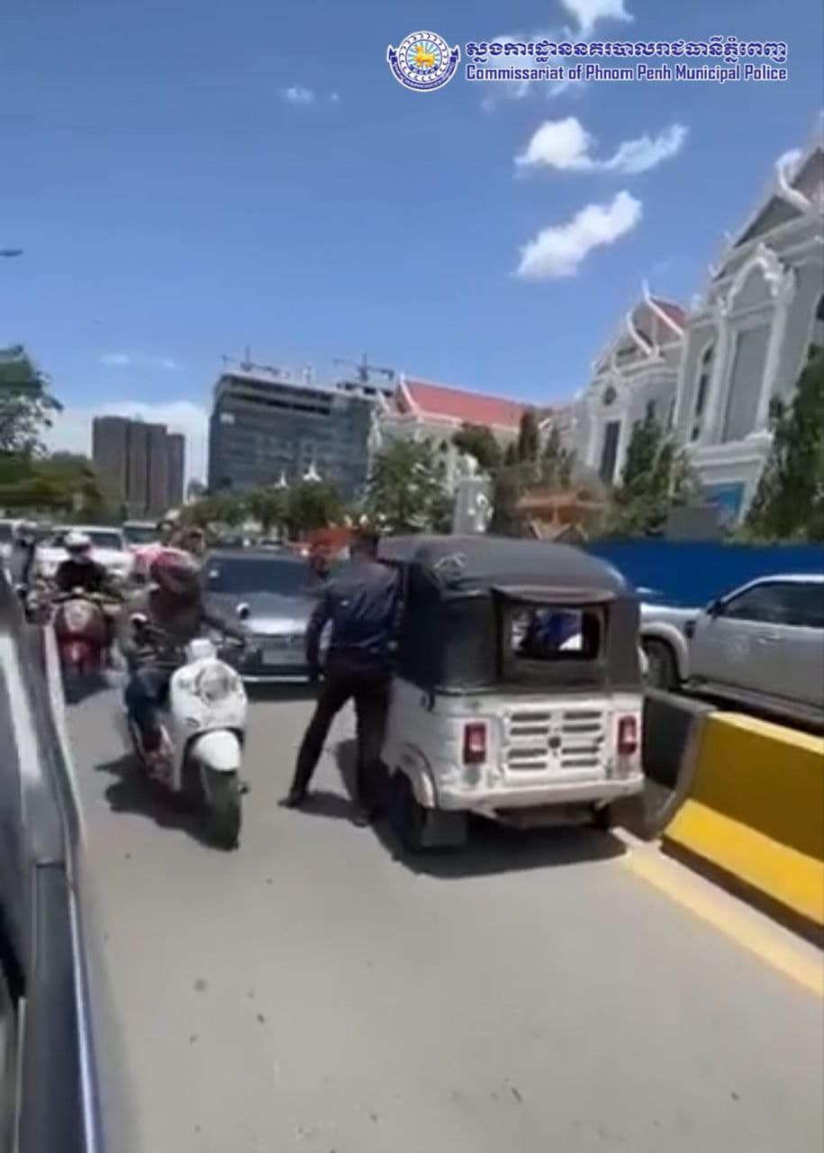សូមបញ្ជាក់ផងដែរថា កាលពីថ្ងៃទី១៥ ខែសីហា ឆ្នាំ២០២៣កន្លងទៅនេះ បន្ទាប់ពីបានឃើញវីដេអូ នៅលើបណ្តាញសង្គម ករណីអ្នកបើកបរម៉ូតូកង់បីបញ្ច្រាសទិស ហើយមានបំណងបង្កហិង្សាដោយប្រើដែកទីប ចង់វាយទៅលើអ្នកបើកបររថយន្ត ត្រូវបានស្នងការនគរបាលរាជធានីភ្នំពេញ បានដាក់បទបញ្ជាដល់សមត្ថកិច្ច រកអ្នកបើកបរម៉ូតូកង់បីបញ្ច្រាសទិសនោះឱ្យឃើញ។