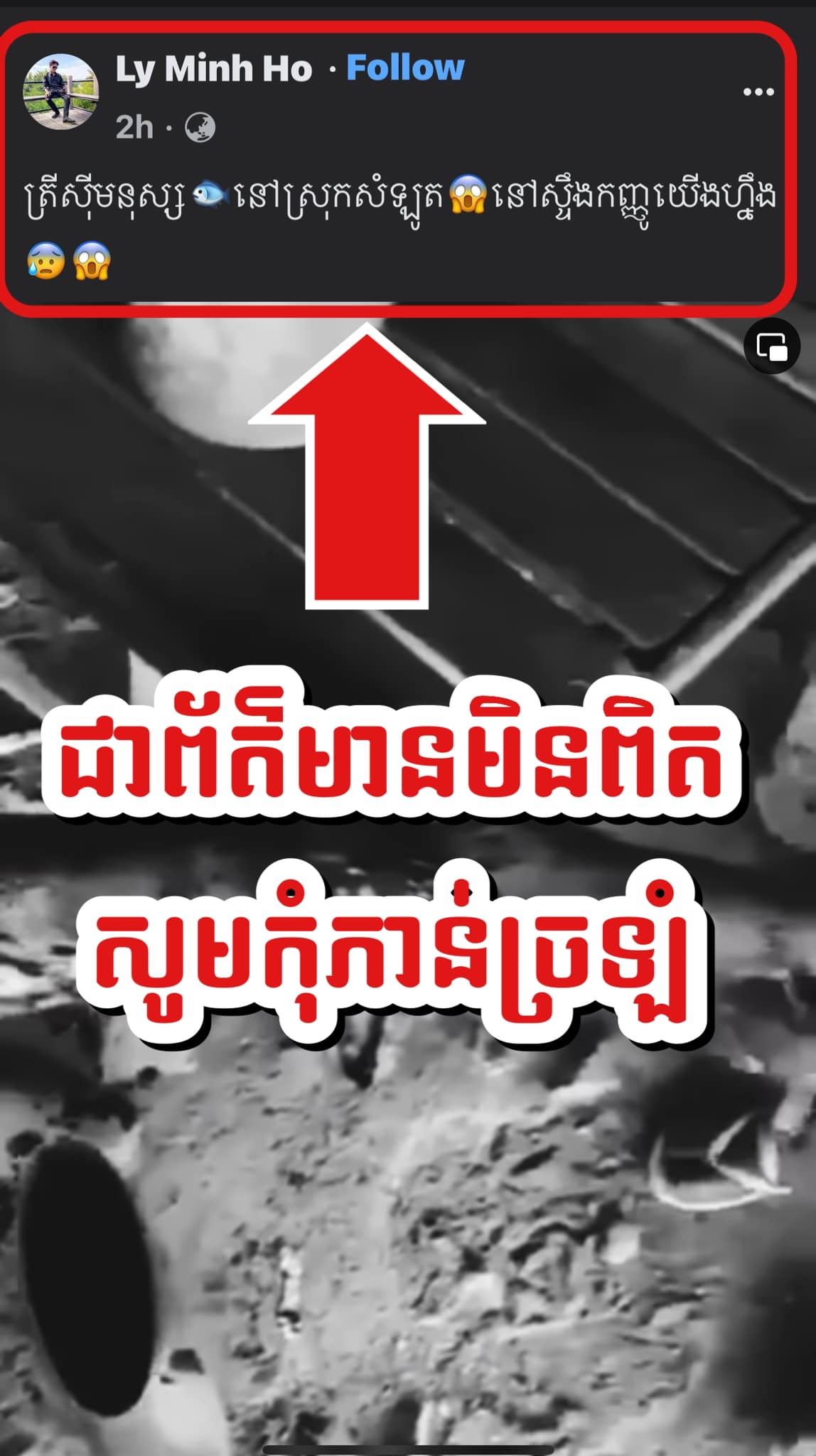 បុរសម្នាក់ដែលផ្តើមបង្ហោះផ្អើលរឿងត្រីស៊ីសាច់មនុស្សនៅស្រុកសំឡូត បានចេញមកសុំទោសជាសាធារណ:ហើយ
