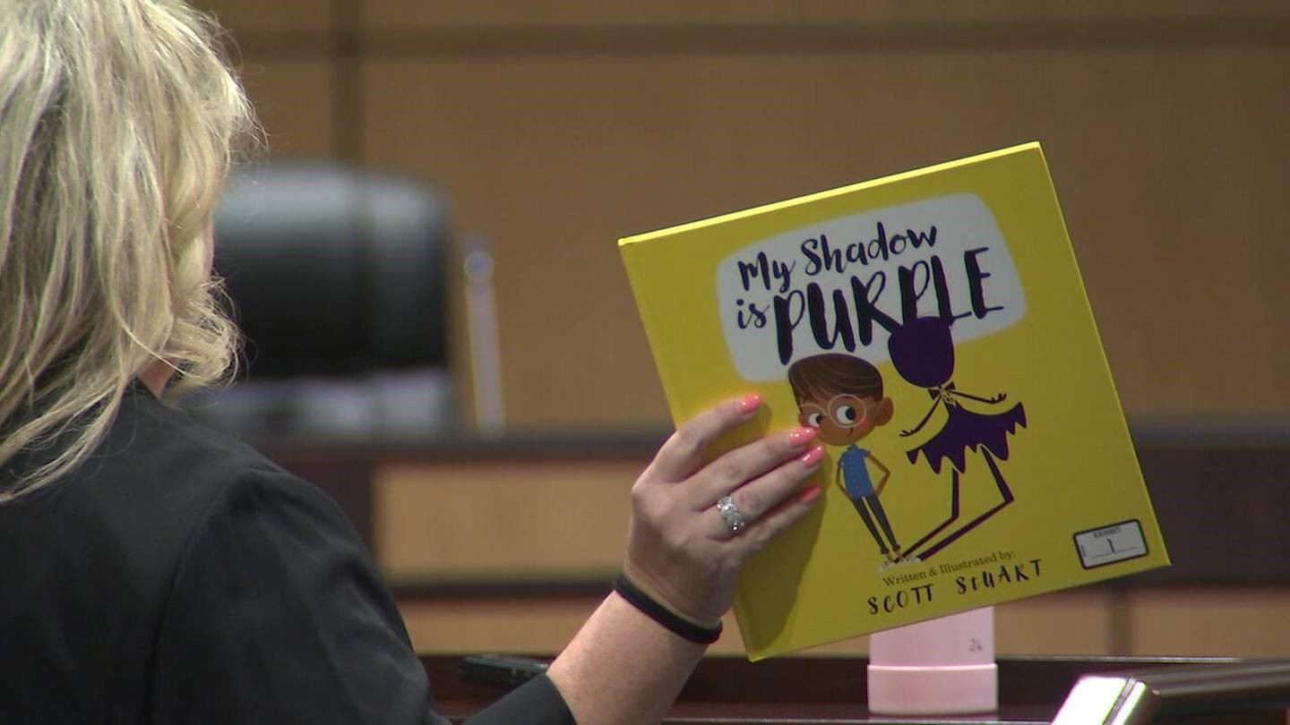 ប្រភពខាងលើបានបន្តថា សៀវភៅដែលអ្នកគ្រូ Rinderle បានយកទៅអានឲ្យកូនសិស្សស្តាប់នៅក្នុងថ្នាក់នោះគឺ សៀវភៅ “My Shadow Is Purple” (ស្រមោលរបស់ខ្ញុំគឺពណ៌ស្វាយ) ដែលមានខ្លឹមសារបំផុសគំនិតឲ្យអ្នកអានត្រូវរស់ជាខ្លួនឯង ធ្វើអ្វីតាមក្តីស្រមៃរបស់ខ្លួនឯង ជ្រើសរើសពណ៌ជីវិតដាច់ដោយឡែកមួយសម្រាប់ខ្លួនឯង ដោយមិនចាំបាច់ខ្វល់អំពីបញ្ហាយេនឌ័រនៅក្នុងសង្គម និងស្រមោលរបស់ឪពុកម្តាយឡើយ។ បើតាមគណៈគ្រប់គ្រងសាលាបានបញ្ជាក់ថា តាមការពិតសៀវភៅខាងលើនេះមិនមែនជាសៀវភៅមិនល្អនោះទេ តែបញ្ហានៅត្រង់ថាទស្សនៈនៅក្នុងសៀវភៅគឺមិនល្អសម្រាប់ក្មេងៗនោះទេ ដ្បិតវាអាចបំផុតគំនិតឲ្យក្មេងៗដែលមិនទាន់មានមូលដ្ឋានក្នុងគិតយកទៅប្រើប្រាស់ក្នុងផ្លូវអវិជ្ជមានបាន៕