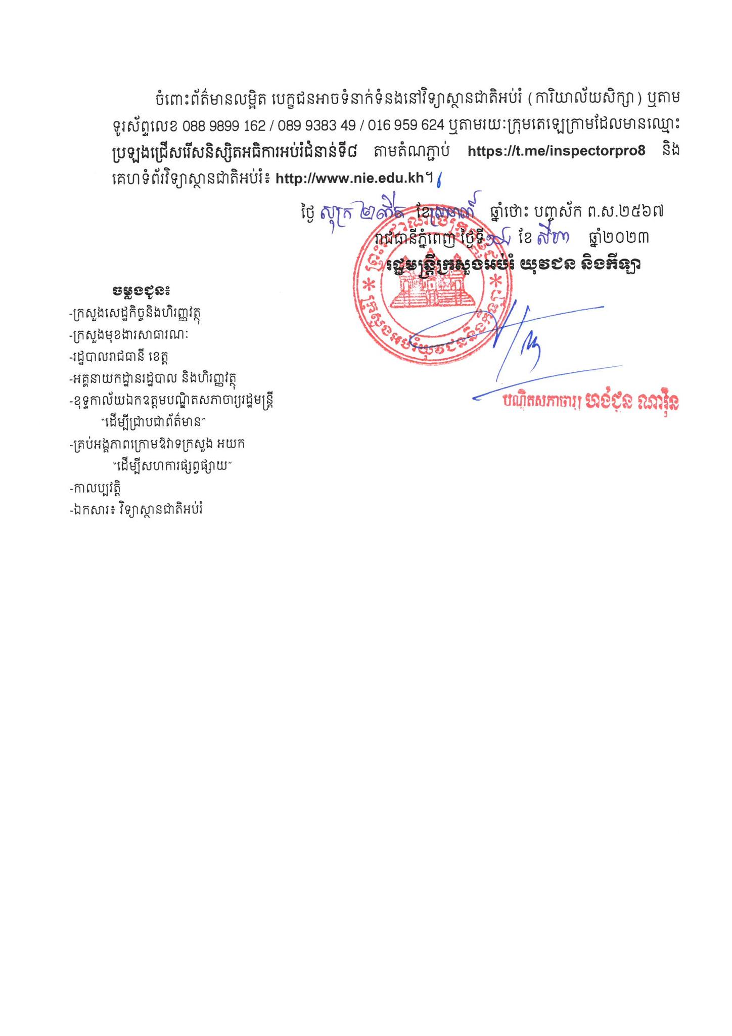 សូមអានសេចក្ដីជូនដំណឹងលម្អិតរបស់ ក្រសួងអប់រំ ដូចខាងក្រោម៖