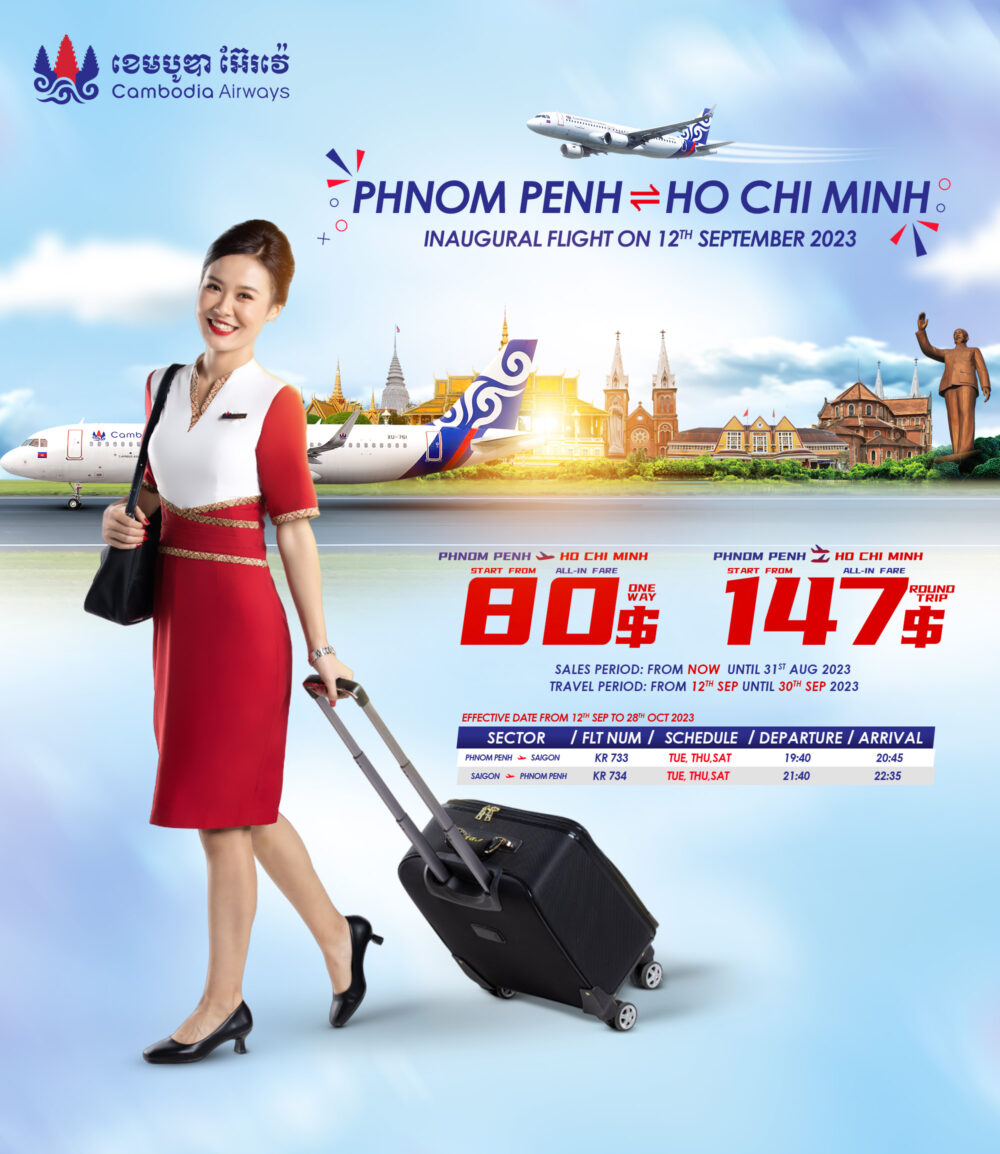ក្រុមហ៊ុន អាកាសចរណ៍ខេមបូឌាអ៊ែរវ៉េផ្តល់ជូនប្រូម៉ូសិនពិសេសសម្រាប់ជើងហោះហើរថ្មីភ្នំពេញ -ហូជីមិញ