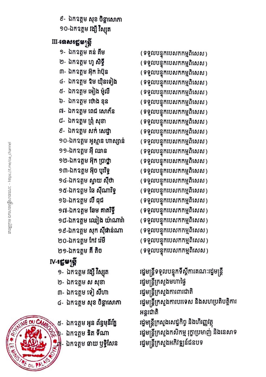 ព្រះមហាក្សត្រ ចេញព្រះរាជក្រឹត្យតែងតាំង ឯកឧត្តម ស សុខា ជាឧបនាយករដ្ឋមន្ដ្រី និងជារដ្ឋមន្ដ្រីក្រសួងមហាផ្ទៃ