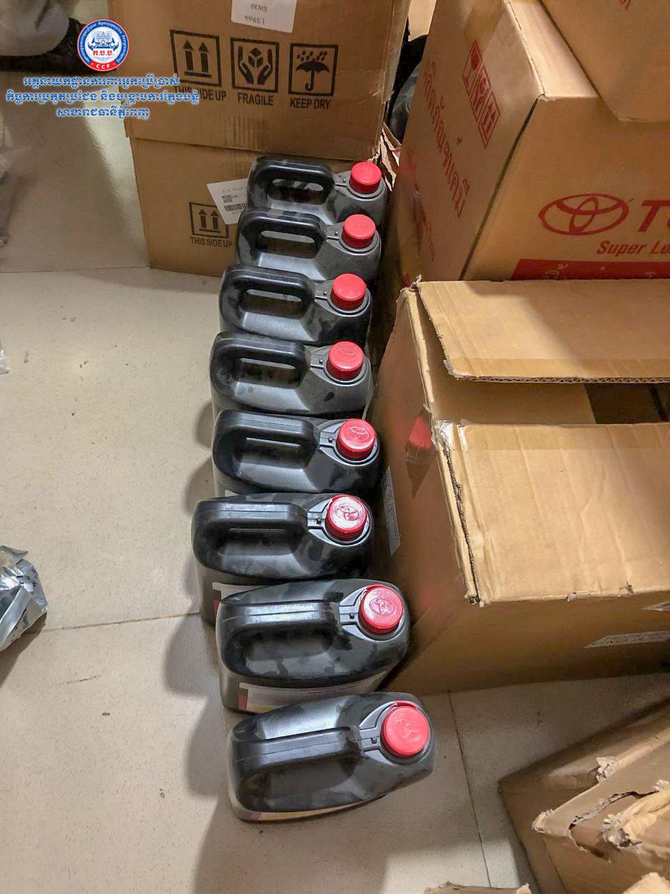 ក្នុងរយៈពេល ០៥ថ្ងៃ ចាប់ពីថ្ងៃទី១៥ ដល់ថ្ងៃទី១៩ ខែសីហា ឆ្នាំ២០២៣ មន្រ្តីនៃអគ្គនាយកដ្ឋានការពារអ្នកប្រើប្រាស់ កិច្ចការប្រកួតប្រជែង និងបង្រ្កាបការក្លែងបន្លំ”ក.ប.ប.” បានចុះត្រួតពិនិត្យនិងបង្រ្កាបទៅលើផលិតផលក្លែងបន្លំ ក្លែងក្លាយ បំពានសិទ្ធិផ្តាច់មុខ និងខុសច្បាប់ ដែលពាក់ម៉ាកតូយូតា ពុំមានស្លាកសញ្ញា និងពុំមានប្រភពនាំចូលចែកចាយច្បាស់លាស់ នៅក្នុងរាជធានីភ្នំពេញ ដោយបានដកហូតនូវផលិតផលចំនួន ២៦មុខ ស្មើនឹង ២,៤៤០គីឡូក្រាម។