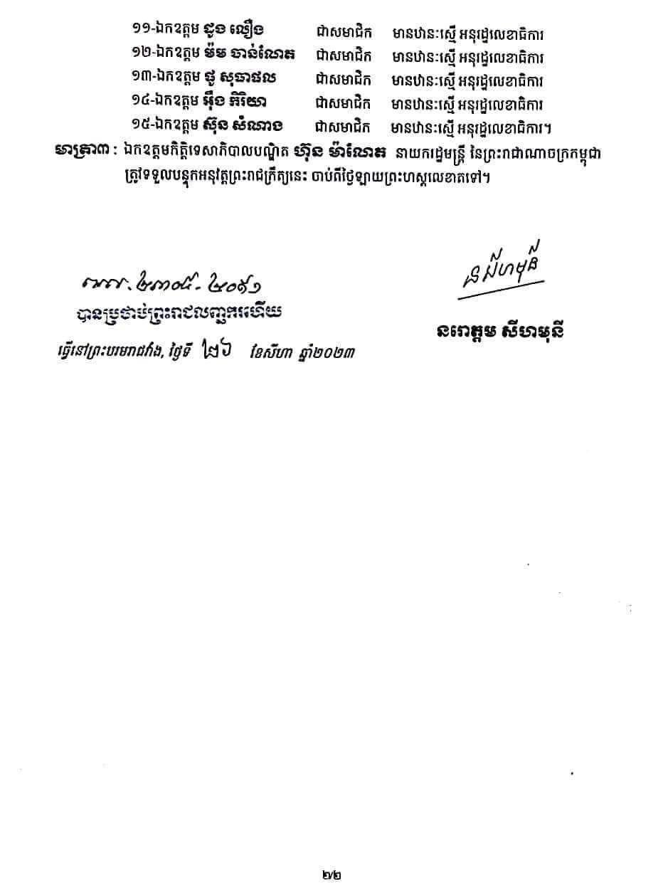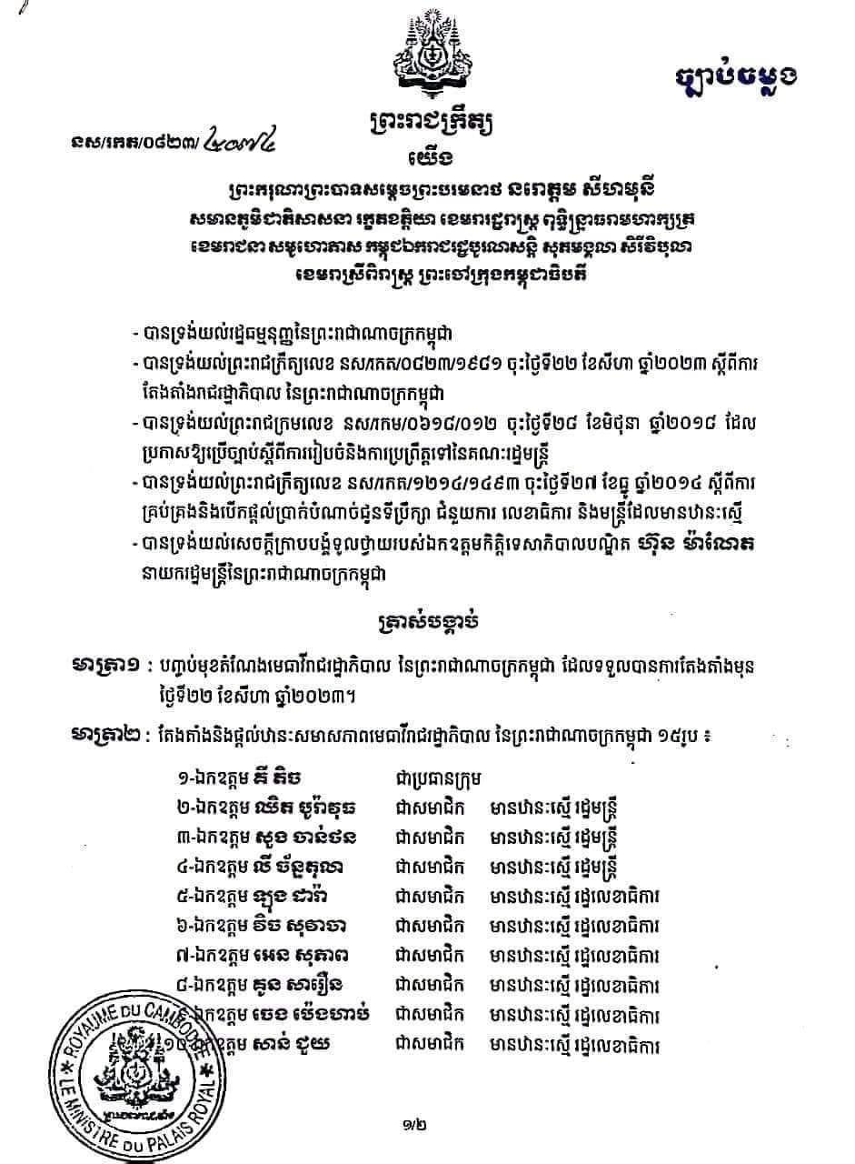 ខាងក្រោមនេះជាព្រះរាជក្រឹត្យ របស់ព្រះមហាក្សត្រ៖