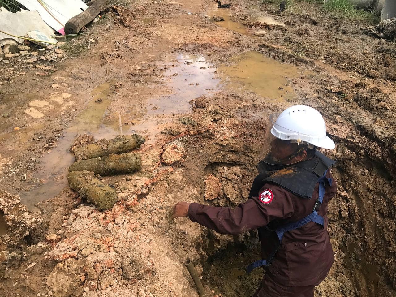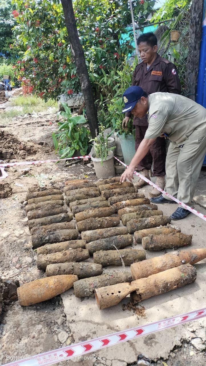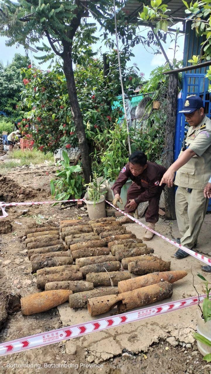 ជីកដីដាក់លូបង្ហូរទឹកប៉ះចំរណ្តៅគ្រាប់មិនទាន់ផ្ទុះចំនួន ៤៧គ្រាប់ ត្រូវបានកម្លាំងជំនាញCMC ចុះអន្តរាគមន៍ភ្លាមៗ ស្ថិតនៅក្រុងបាត់ដំបង