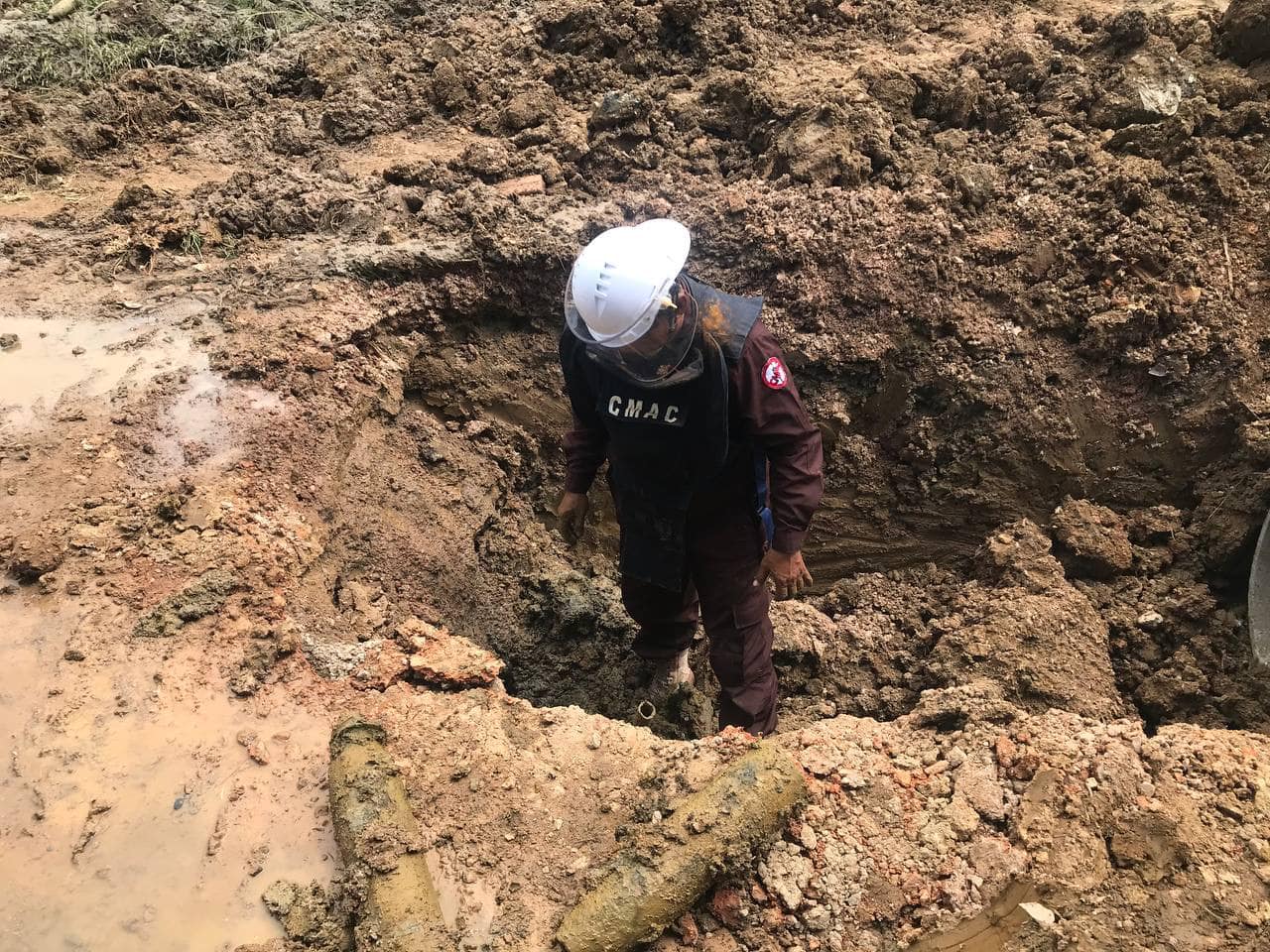 ខេត្តបាត់ដំបង៖ យោងតាមការចុះផ្សាយរបស់ មជ្ឈមណ្ឌលសកម្មភាពកំចាត់មីនកម្ពុជា បានឱ្យដឹងថា​ កម្លាំងជំនាញអង្គភាពស៊ីម៉ាក់ប្រចាំទិសខេត្តបាត់ដំបង កាលពីថ្ងៃទី០៤ ខែកញ្ញា ឆ្នាំ២០២៣នេះ បានឆ្លើយតបតាមសំណើរបស់ប្រជាពលរដ្ឋក្នុងមូលដ្ឋានដែលមានទីតាំងនៅភូមិអញ្ចាញ សង្កាត់អូរចា ក្រុងបាត់ដំបង ដែលបានជីកដីដាក់ប្រពន្ធ័លូបង្ហូរទឹកប៉ះចំរណ្តៅគ្រាប់មិនទាន់ផ្ទុះជាសំណល់សង្គ្រាម។