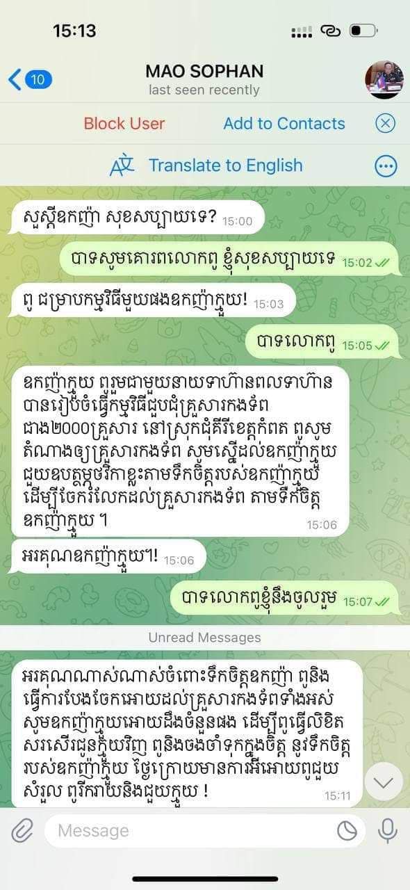 ជនសង្ស័យខាងលើមានឈ្មោះ រ៉ែម គង់នៅដារ៉ា ភេទប្រុស អាយុ ៤៣ឆ្នាំ មុខរបរមិនពិតប្រាកដ ដែលបានបង្កើតប្រព័ន្ធទំនាក់ទំនងសង្គមតេឡេក្រាម (Telegram) ដាក់ឈ្មោះ ឯកឧត្តម ឧត្តមសេនីយ៍ឯក ម៉ៅ សុផាន់ អគ្គមេបញ្ជាការកងទ័ពជើងគោក នៃកងយោធពលខេមរភូមិន្ទ និងដាក់ឈ្មោះ ឯកឧត្តម ទេសរដ្ឋមន្ត្រី គន់ គីម ដោយបានធ្វើសកម្មភាពទាក់ទងទៅអ្នកមានទំនាក់ទំនងស្គាល់ ឯកឧត្តម ឧត្តមសេនីយ៍ឯក ម៉ៅ សុផាន់ និង ឯកឧត្តម ទេសរដ្ឋមន្ត្រី គន់ គីម ដើម្បីឆបោកឱ្យផ្ញើប្រាក់ ក្រោមរូបភាពគៀរគរប្រាក់យកទៅជួយគ្រួសារទ័ព។