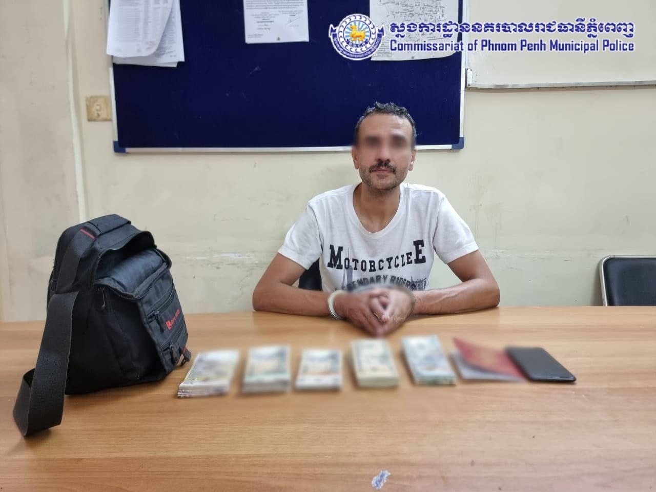ជនសង្ស័យឈ្មោះ PAHANGEH MORTEZA ភេទប្រុស ជនជាតិអឺរ៉ង់ មុខរបរ មិនពិតប្រាកដ ស្នាក់នៅបណ្ដោះអាសន្ន GOLDEN RESIDENCE ម្ដុំផ្សាររាត្រី សង្កាត់ផ្សារចាស់ ខណ្ឌដូនពេញ។ វត្ថុតាងចាប់យក៖ កាបូបស្ពាយពណ៌ខ្មៅ ចំនួន០១ ក្នុងកាបូបមានប័ណ្ណបើកបររថយន្ត មួយច្បាប់, ទូរស័ព្ទដៃម៉ាក VIVO ពណ៌ខ្មៅ, លុយខ្មែរ ចំនួន ១០,០០០,០០០៛ (ដប់លានរៀល) , លុយដុល្លារ ចំនួន៣៥៤០ដុល្លារ (បីពាន់ប្រាំរយសែសិបដុល្លារសហរដ្ឋអាមេរិច), លុយឥណ្ឌូនេស៊ី ចំនួន៣៥៥រៀល និងលុយសាំងហ្គាពួរ ២ដុល្លារ ជារបស់ជនសង្ស័យ។