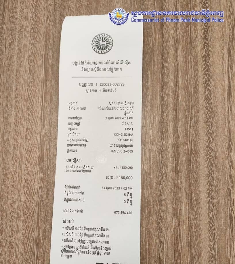 ក្រោយពីទទួលបានព័ត៌មានតាមរយៈបណ្ដាញ TikTok បានធ្វើការបង្ហោះផ្សព្វផ្សាយកាលថ្ងៃទី២៩ ខែកញ្ញា ឆ្នាំ២០២៣ ឯកឧត្តម ឧត្តមសេនីយ៍ទោ ជួន ណារិន្ទ អគ្គស្នងការរងនគរបាលជាតិ និងជាស្នងការនគរបាលរាជធានីភ្នំពេញ បានបញ្ជាទៅលោកវរសេនីយ៍ឯក ដេ ម៉ៅ នាយការិយាល័យនគរបាលចរាចរណ៍ផ្លូវគោក ឲ្យស្រាវជ្រាវករណីនេះជាបន្ទាន់។