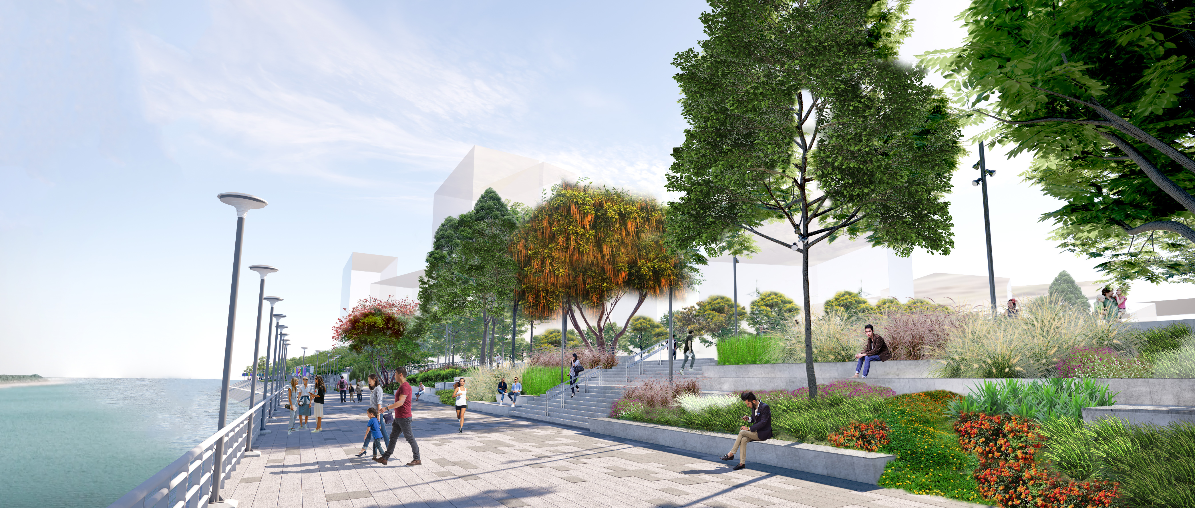 ជាមួយនឹងការអភិវឌ្ឍន៍ហេដ្ឋារចនាសម្ព័ន្ធរួមមានស្ពាន មហាវិថី និងផ្លូវថ្នល់ថ្មីៗ ក្រុមហ៊ុនអូស៊ីអាយស៊ី (OCIC) ក៏បានរៀបចំផ្លូវថ្មើរជើងតាមដងទន្លេមេគង្គ អមជាមួយនឹងសួនផ្កាយ៉ាងស្រស់បំព្រង និងទេសភាពទន្លេមេគង្គ និងទីក្រុងយ៉ាងត្រជាក់ភ្នែកគួរជាទីមនោរម្យ។ ផ្លូវថ្មើរជើងតាមដងទន្លេមេគង្គត្រូវបានប្រសិទ្ធនាមថា នរាផាវ៉េ(Norea Parkway) ។ រចនាបថទាំងមូលត្រូវបានគិតគូរយ៉ាងល្អិតល្អន់និងហ្មត់ចត់ ដោយរៀបចំកែច្នៃនូវទីតាំងធម្មជាតិដ៏ស្រស់ត្រកាលមួយទៅជាទីតាំងសម្រាប់ប្រកបអាជីវកម្ម ផ្សារភ្ជាប់ជាមួយការរស់នៅ និងការលម្ហែកម្សាន្តយ៉ាងល្អឥតខ្ចោះ ស័ក្តិសមសម្រាប់អ្នកដែលចូលចិត្តរស់នៅបែបទីក្រុងផង និងមានធម្មជាតិអមជាមួយផង។