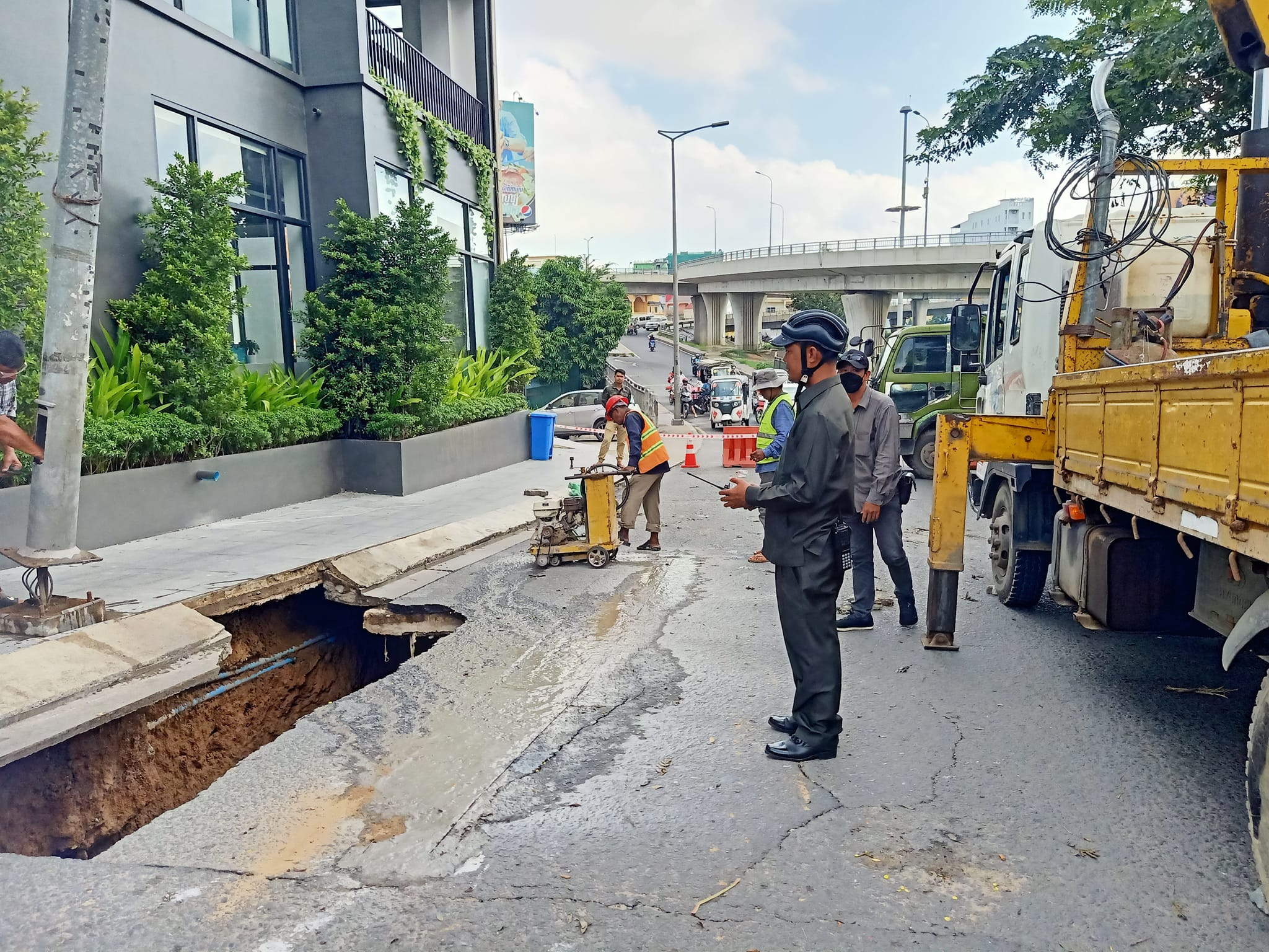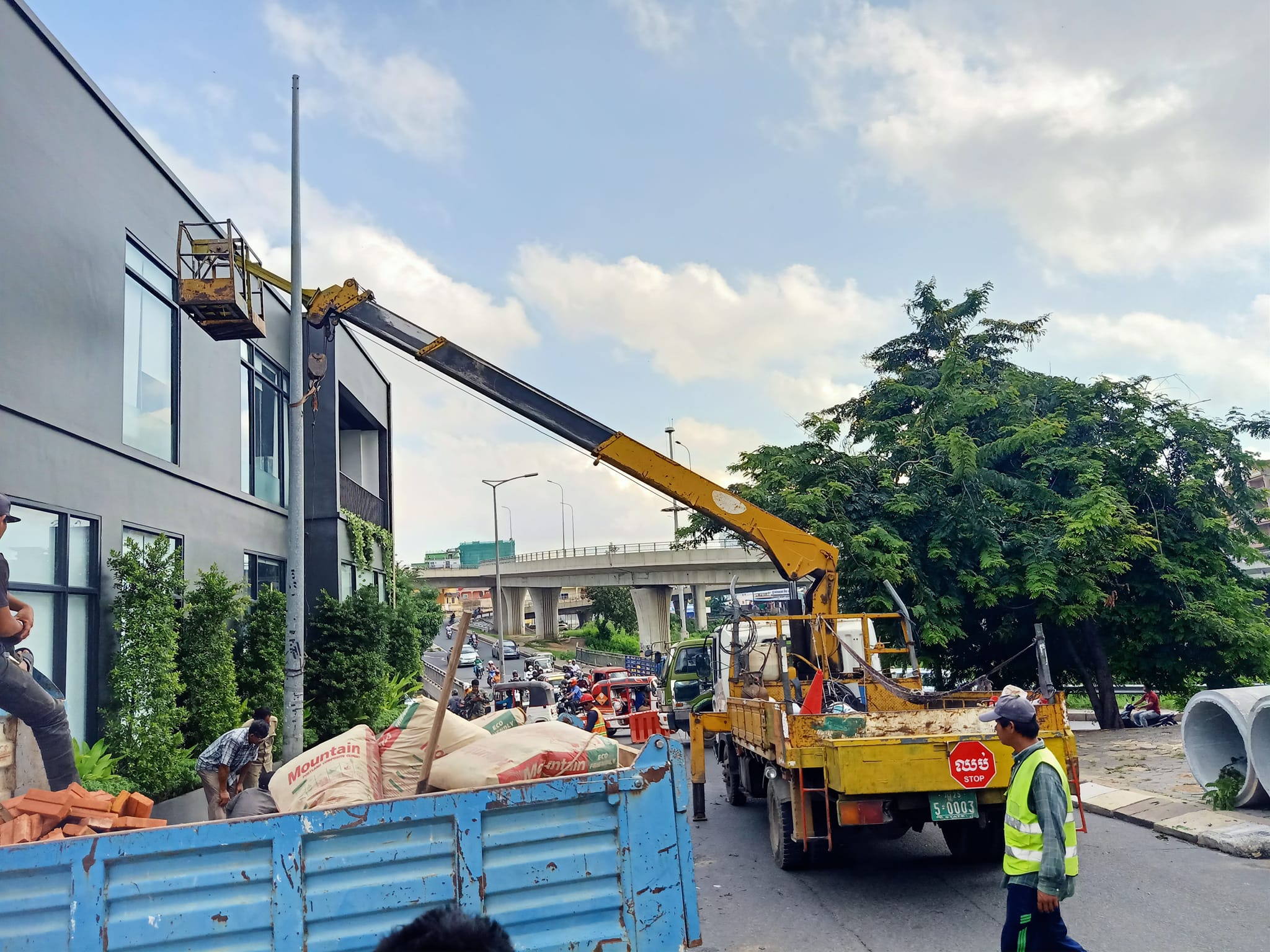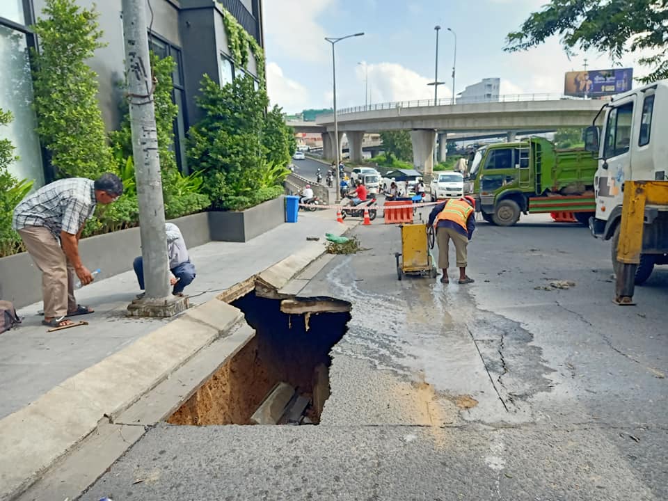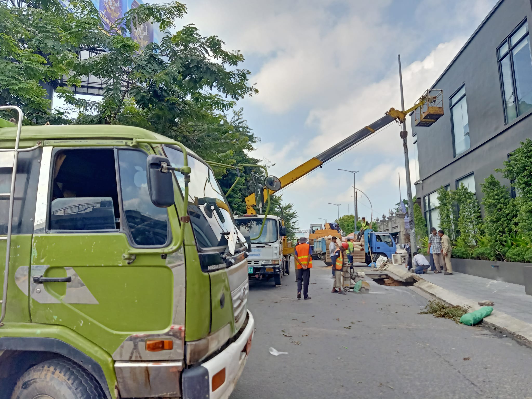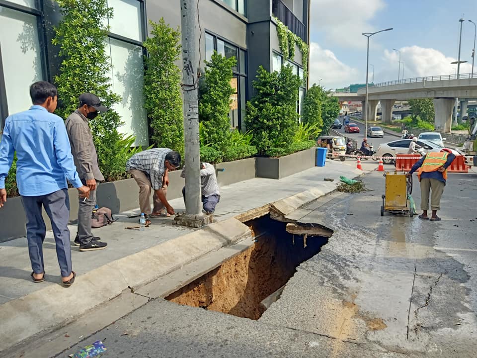 មន្ទីរសាធារណការក្រុង បានស្ថាបនាជួសជុលដាក់ប្រព័ន្ធលូកន្លែងបាក់ស្រុតនៅទីតាំងផ្លូវចុះពីស្ពានអាកាសស្ទឹងមានជ័យឡើងវិញ
