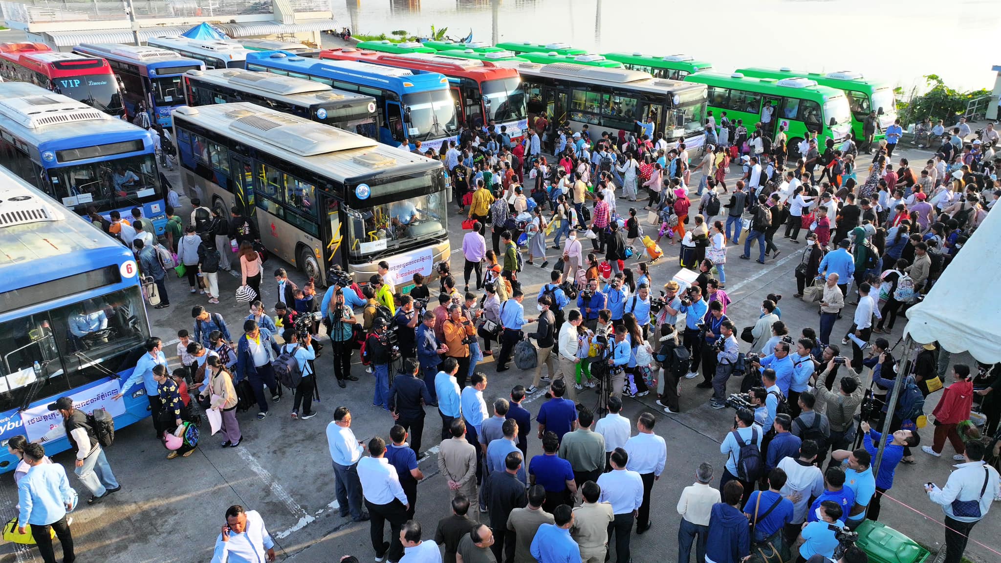 រាជធានីភ្នំពេញ៖ យោងតាមការចុះផ្សាយរបស់ ក្រសួងព័ត៌មាន បានឱ្យដឹងថា បងប្អូនប្រជាពលរដ្ឋ កម្មករ កម្មការិនីរោងចក្រប្រមាណជាជិត៦ម៉ឺននាក់ បានមកទទួលសេវា ដឹកជញ្ជូនសាធារណៈ(រថយន្តក្រុង) ដើម្បីទៅលេង ស្រុកកំណើតជួបជុំបងប្អូន ក្នុងពិធីបុណ្យភ្ជុំបិណ្ឌ ប្រពៃណីជាតិខ្មែរ ដោយបានប្រើប្រាស់រថយន្តក្រុងរហូតដល់ជាង១៥០០ជើង។