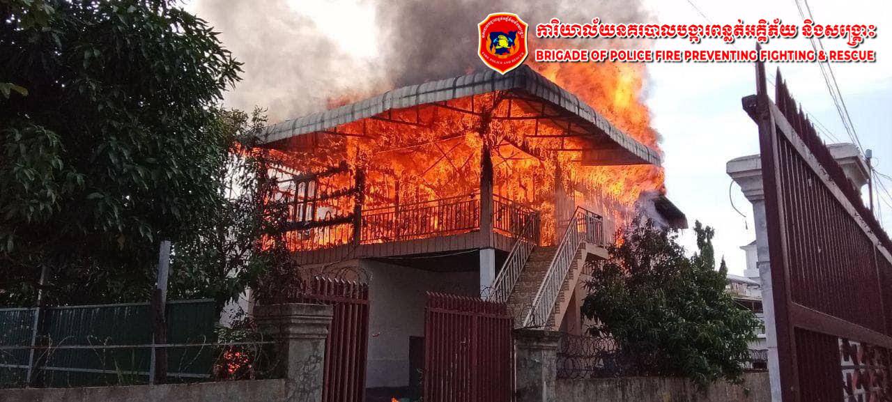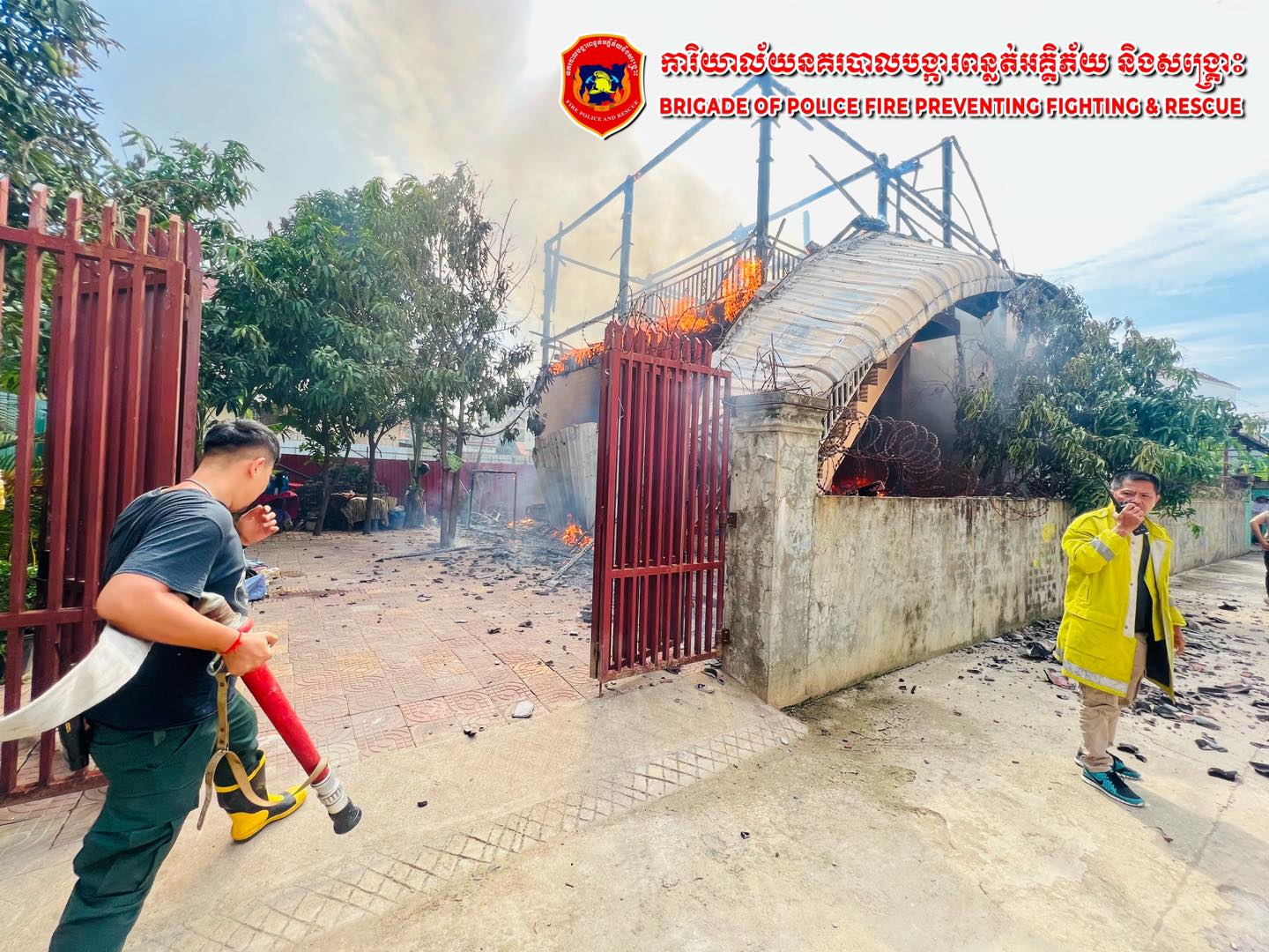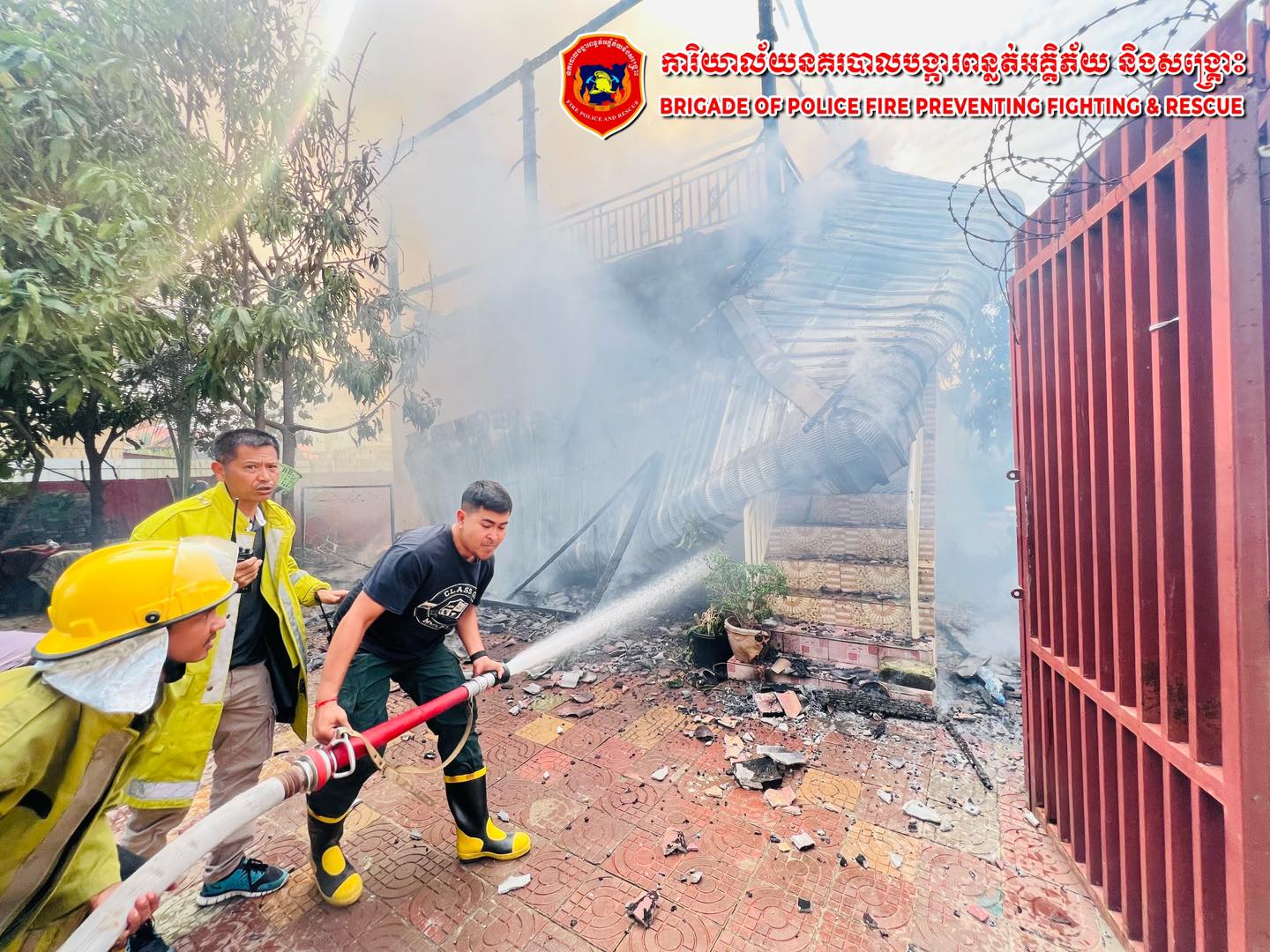 ឆ្លងចរន្តអគ្គិសនី ឆាបឆេះផ្ទះប្រជាពលរដ្ឋមួយខ្នងអស់ទាំងស្រុង នៅខណ្ឌមានជ័យ ដោយនគរបាលប្រើប្រាស់ឡានទឹកចំនួន ១០គ្រឿង