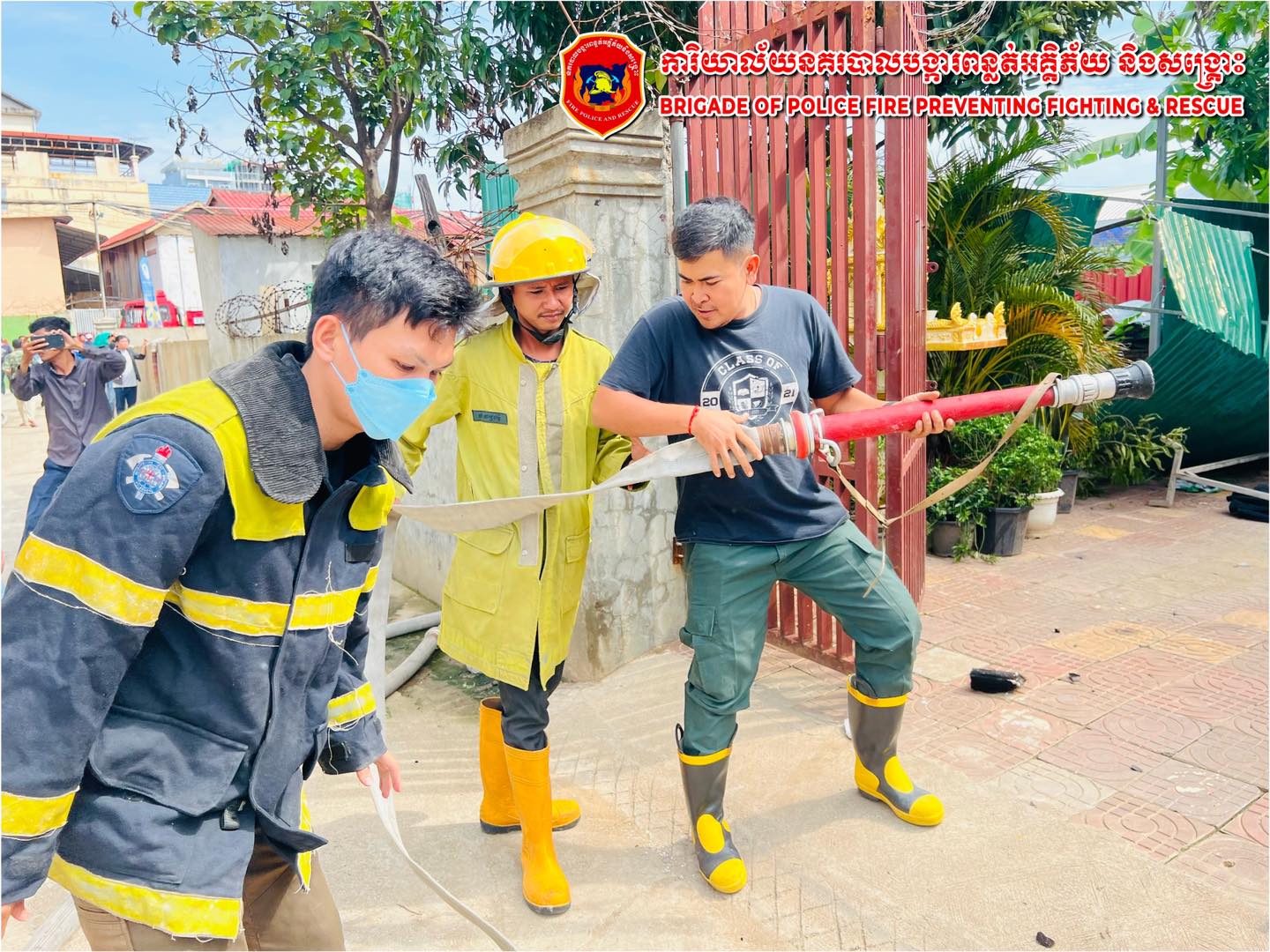 ដោយទទួលបានបទបញ្ជារបស់ ឯកឧត្តម ឧត្តមសេនីយ៍ទោ ជួន ណារិន្ទ អគ្គស្នងការរងនគរបាល និងជាស្នងការនគរបាលរាជធានីភ្នំពេញ លោកវរសេនីយ៍ឯក ព្រហ្ម យ៉ន នាយការិយាល័យនគរបាលបង្ការពន្លត់អគ្គិភ័យ និងសង្គ្រោះ នៃស្នងការដ្ឋាននគរបាលរាជធានីភ្នំពេញ បានដឹកនាំបញ្ជាផ្ទាល់ដល់កងម្លាំងពន្លត់អគ្គិភ័យដែលប្រចាំការនៅគ្រប់គោលដៅ ដើម្បីចេញទៅជួយអន្តរាគមន៍បាញ់ទឹកពន្លត់ឲ្យទាន់ពេលវេលា កុំឲ្យមានការឆាបឆេះបន្តដល់ផ្ទះប្រជាពលរដ្ឋដែលនៅក្បែរនោះ។