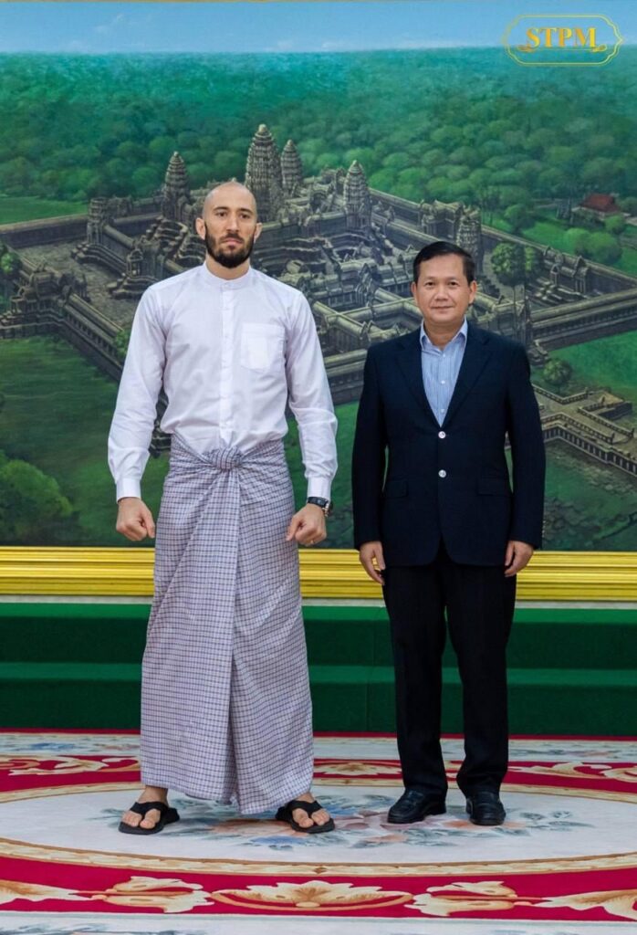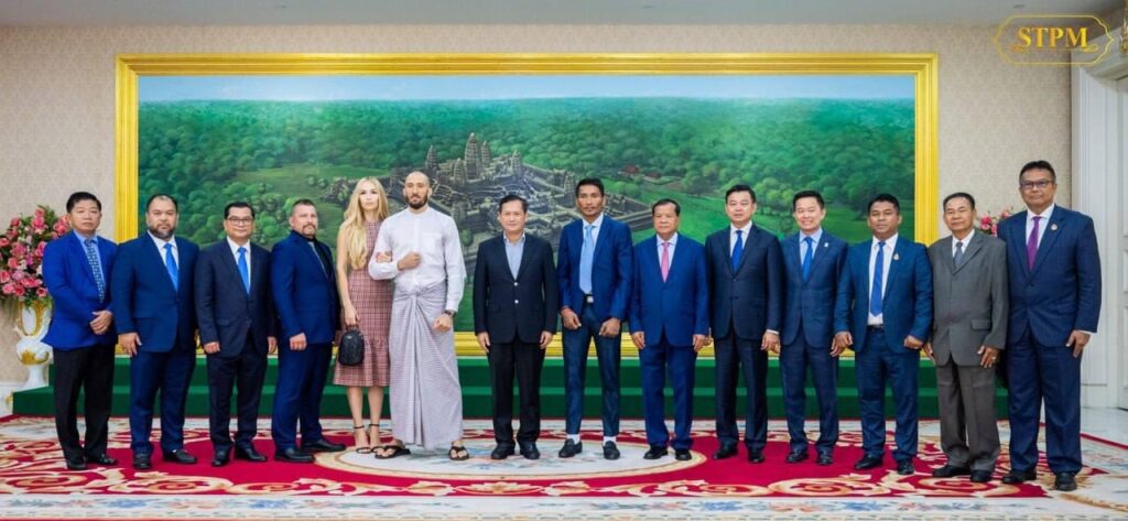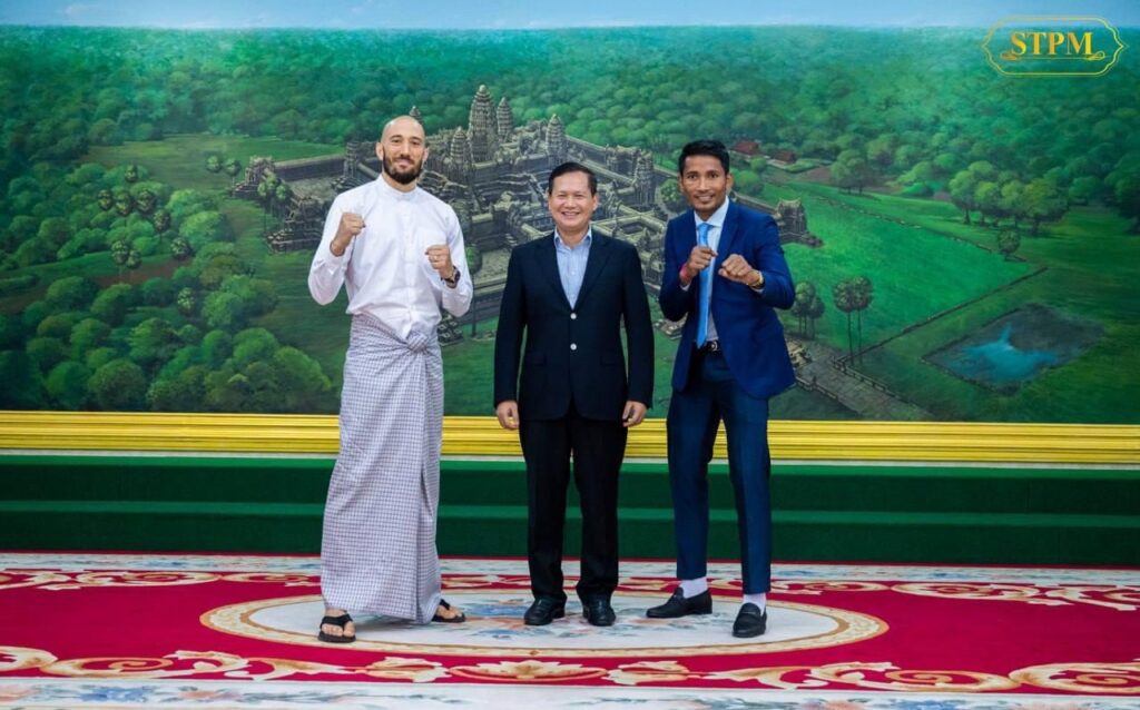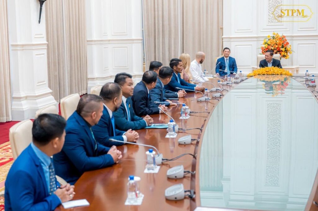 (ភ្នំពេញ)៖ នៅថ្ងៃទី២ ខែវិច្ឆិកា ឆ្នាំ២០២៣ សម្តេចមហាបវរធិបតី ហ៊ុន ម៉ាណែត នាយករដ្ឋមន្ត្រីកម្ពុជា បានអនុញ្ញាតឱ្យថ្នាក់ដឹកនាំកំពូលក្រុមហ៊ុន ខ្មែរ ប៊ែវើរីជីស ដែលមានអ្នកឧកញ៉ា លាង ឃុន និងអ្នកឧកញ៉ា លាង ម៉េង, កំពូលកីឡាករគុនខ្មែរ ព្រំ សំណាង, ស្តេចប្រដាល់ភូមា ដាវ លឺដុឌ និងអ្នកតំណាងស្ថានីយទូរទស្សន៍ ថោន ចូលជួបដើម្បីសម្តែងការគួរសមមុនចូលរួមប្រកួតក្នុងមហាព្រឹត្តិការណ៍ «WURKZ សេនាគុនខ្មែរពិភពលោក» នៅថ្ងៃទី៥ ខែវិច្ឆិកា ខាងមុខនេះ។