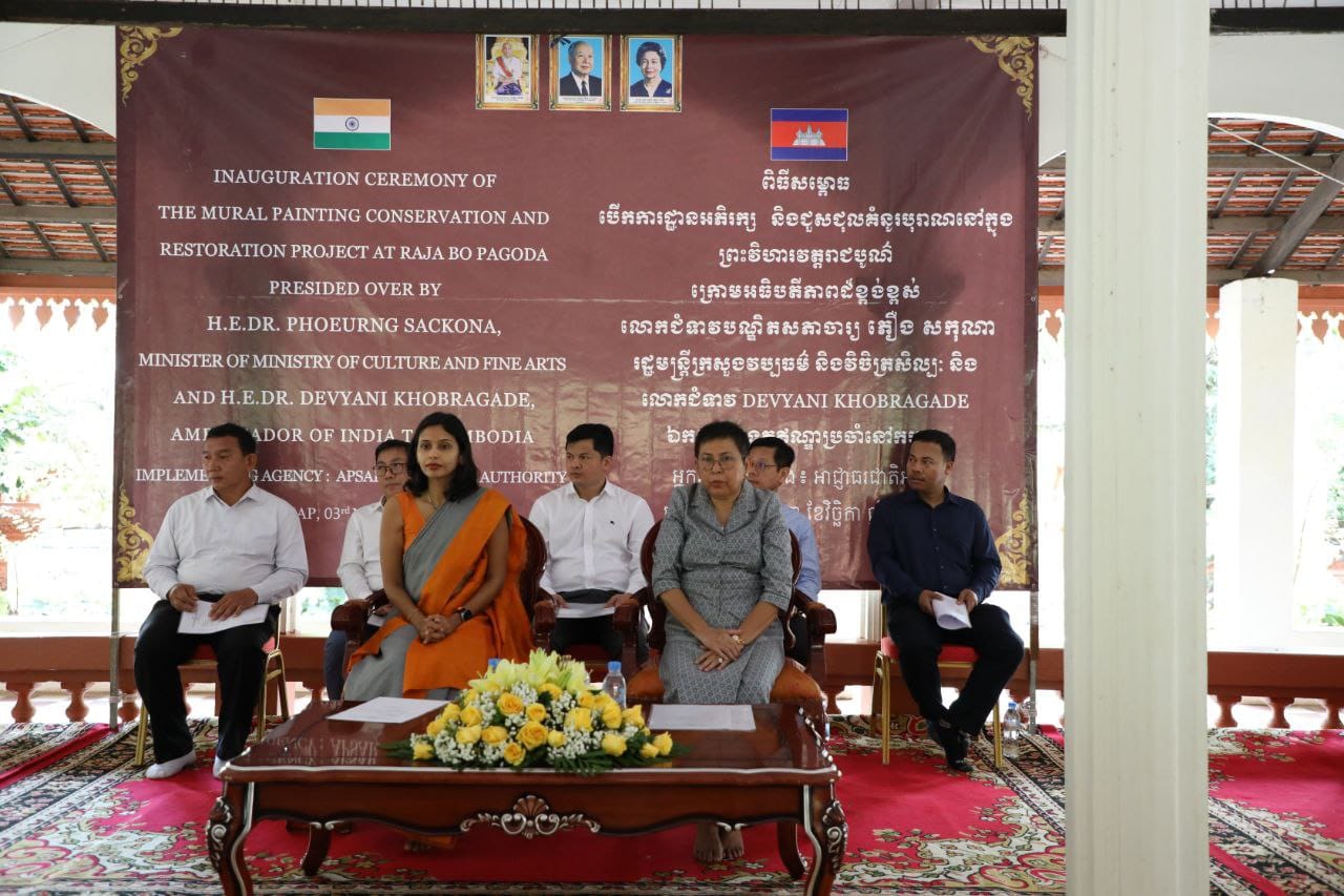 ខេត្តសៀមរាប៖ យោងតាមការចុះផ្សាយរបស់ អាជ្ញាធរជាតិអប្សរា បានឱ្យដឹងថា រដ្ឋមន្ត្រីក្រសួងវប្បធម៌ និងវិចិត្រសិល្បៈនៃប្រទេសកម្ពុជា និងឯកអគ្គរដ្ឋទូតនៃសាធារណរដ្ឋឥណ្ឌា បានអញ្ជើញធ្វើជាអធិបតីក្នុងពិធីបើកសម្ពោធការដ្ឋានអភិរក្ស និងជួសជុលគំនូរបុរាណ ដែលមានអាយុរាប់រយឆ្នាំ នៅក្នុងព្រះវិហារនៃវត្តរាជបូណ៌ ក្នុងទីរួមខេត្តសៀមរាប នាព្រឹកថ្ងៃទី០៣ ខែវិច្ឆិកា ឆ្នាំ២០២៣។