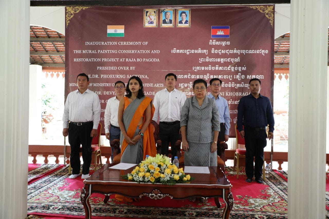 លោកជំទាវ ភឿង សកុណា មានប្រសាសន៍ទៀតថា រាជរដ្ឋាភិបាលកម្ពុជានិងរដ្ឋាភិបាលឥណ្ឌា បានចុះហត្ថលេខាលើកិច្ចព្រមព្រៀងហិរញ្ញប្បទាន ដើម្បីអភិរក្សគំនូរបុរាណនៅក្នុងព្រះវិហារនៃវត្តរាជបូណ៌នេះតាំងតែពីថ្ងៃទី១២ ខែវិច្ឆិកា ឆ្នាំ២០២២។ លោកជំទាវជឿជាក់យ៉ាងមុតមាំថា ការប្តេជ្ញាចិត្តរបស់យើងក្នុងការការពារគំនូរដ៏មានអត្ថន័យ និងមានតម្លៃទាំងនេះនៅតែរឹងមាំ។