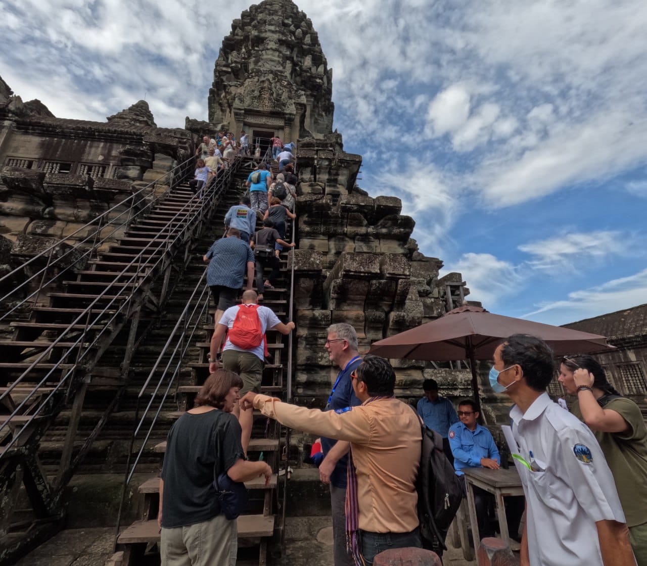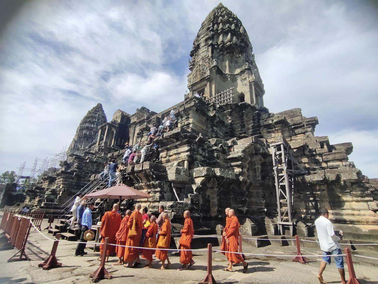 ជារៀងរាល់ថ្ងៃមន្ត្រីអាជ្ញាធរជាតិអប្សរា បានរៀបចំសណ្តាប់ធ្នាប់ និងសុវត្ថិភាពជាប្រចាំសម្រាប់ភ្ញៀវទេសចរដែលឡើងទៅទស្សនាផង និងថ្វាយគ្រឿងសក្ការៈបូជាផងនៅលើរួតបាកាណនៃប្រាសាទអង្គរវត្តនេះ។