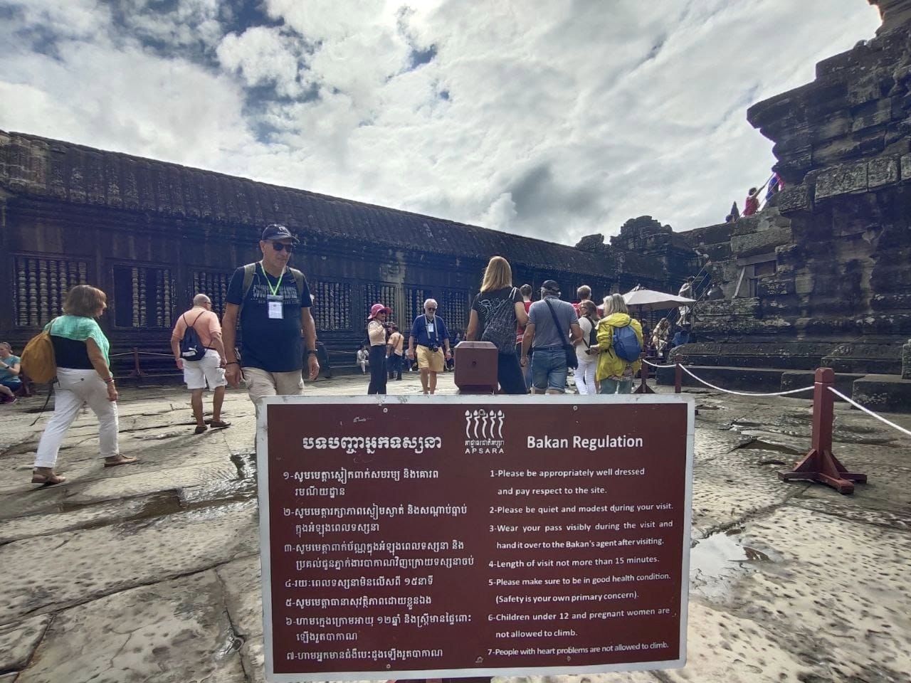 ប្រធានគ្រប់គ្រងភ្នាក់ងារទេសចរណ៍ នៃអាជ្ញាធរជាតិអប្សរា ប្រចាំការប្រាសាទអង្គរវត្ត លោក ឡេក គិមលីន មានប្រសាសន៍ថា ដើម្បីសុវត្ថិភាពរបស់ភ្ញៀវទេសចរជាតិ និងអន្តរជាតិ អាជ្ញាធរជាតិអប្សរាបានយកចិត្តទុកដាក់ខ្ពស់បំផុតសម្រាប់ភ្ញៀវដែលឡើងទៅទស្សនារួតបាកាណ។ ការឡើងលើរួតបាកាណនេះ គឺមានបញ្ញត្តិមួយចំនួនដូចជា ទី១ ការឡើងទៅលើកំពូលប្រាសាទ គឺមិនឱ្យលើសពី១០០នាក់ទេក្នុងពេលទស្សនាម្ដងៗ ដើម្បីបង្ការពីសុវត្ថិភាពរបស់ភ្ញៀវ និងដើម្បីការពារប្រាសាទ។ ទី២ តម្រូវឱ្យភ្ញៀវទេសចរទាំងឡាយគោរពទៅតាម(ក្រមប្រតិបត្តិអង្គរ)មិនស្លៀកពាក់ខ្លីមិនសមរម្យ ត្រូវរក្សាភាពស្ងៀមស្ងាត់ និងសណ្តាប់ធ្នាប់ក្នុងកំឡុងពេលទស្សនា ហើយរយៈពេលទស្សនាទៀតសោត គឺមិនលើសពី១៥នាទីឡើយ។ ទី៣ ហាមក្មេងដែលមានអាយុក្រោម១២ឆ្នាំ ស្រ្តីមានផ្ទៃពោះ និងអ្នកដែលមានជំងឺខ្សោយបេះដូងឡើងទៅលើរួតបាកាណ ពីព្រោះតែជណ្ដើរមានរាងចោតខ្លាំង៕
