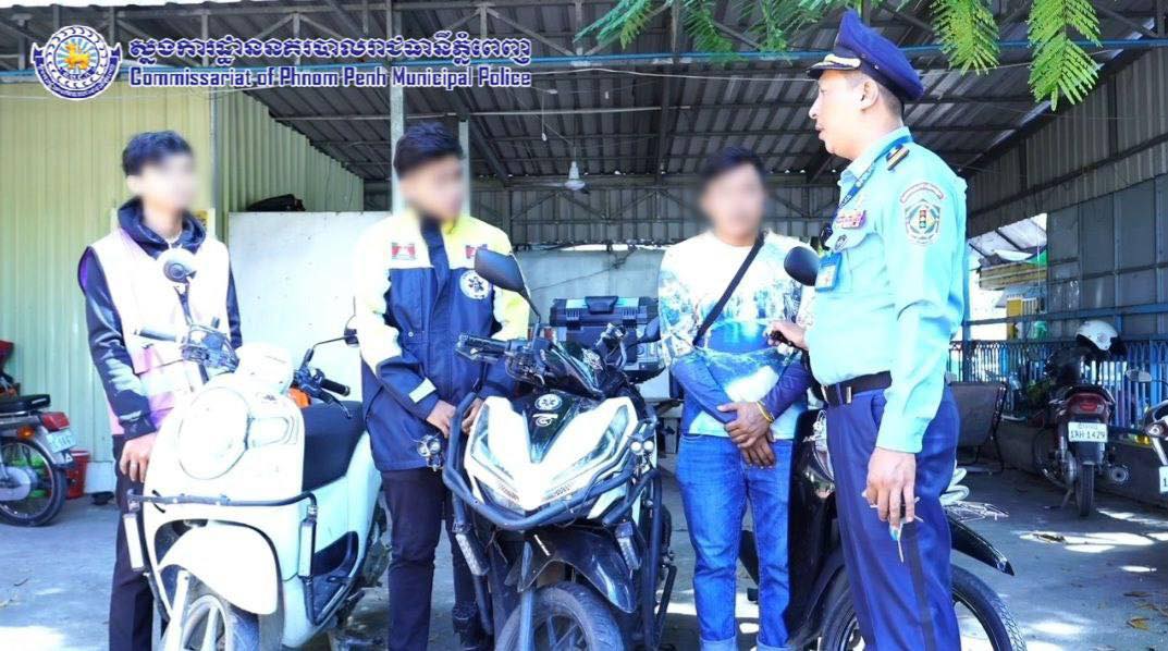 រាជធានីភ្នំពេញ៖​ នៅថ្ងៃទី១៧ ខែវិច្ឆិកា ឆ្នាំ២០២៣ យោងតាមការចុះផ្សាយរបស់ ស្នងការដ្ឋាននគរបាលរាជធានីភ្នំពេញ បានឱ្យដឹងថា ក្រុមយុវជន៥នាក់ ដែលតែងតែបើកម៉ូតូបំពាក់ស៊ីរ៉ែន និងកែច្នៃខុសបច្ចេកទេស នាំឡានពេទ្យ នៅតាមដងផ្លូវនោះ ត្រូវបាននគរបាលចរាចរណ៍ ហៅមកអប់រំ និងឲ្យធ្វើកិច្ចសន្យាបញ្ឈប់សកម្មភាព។