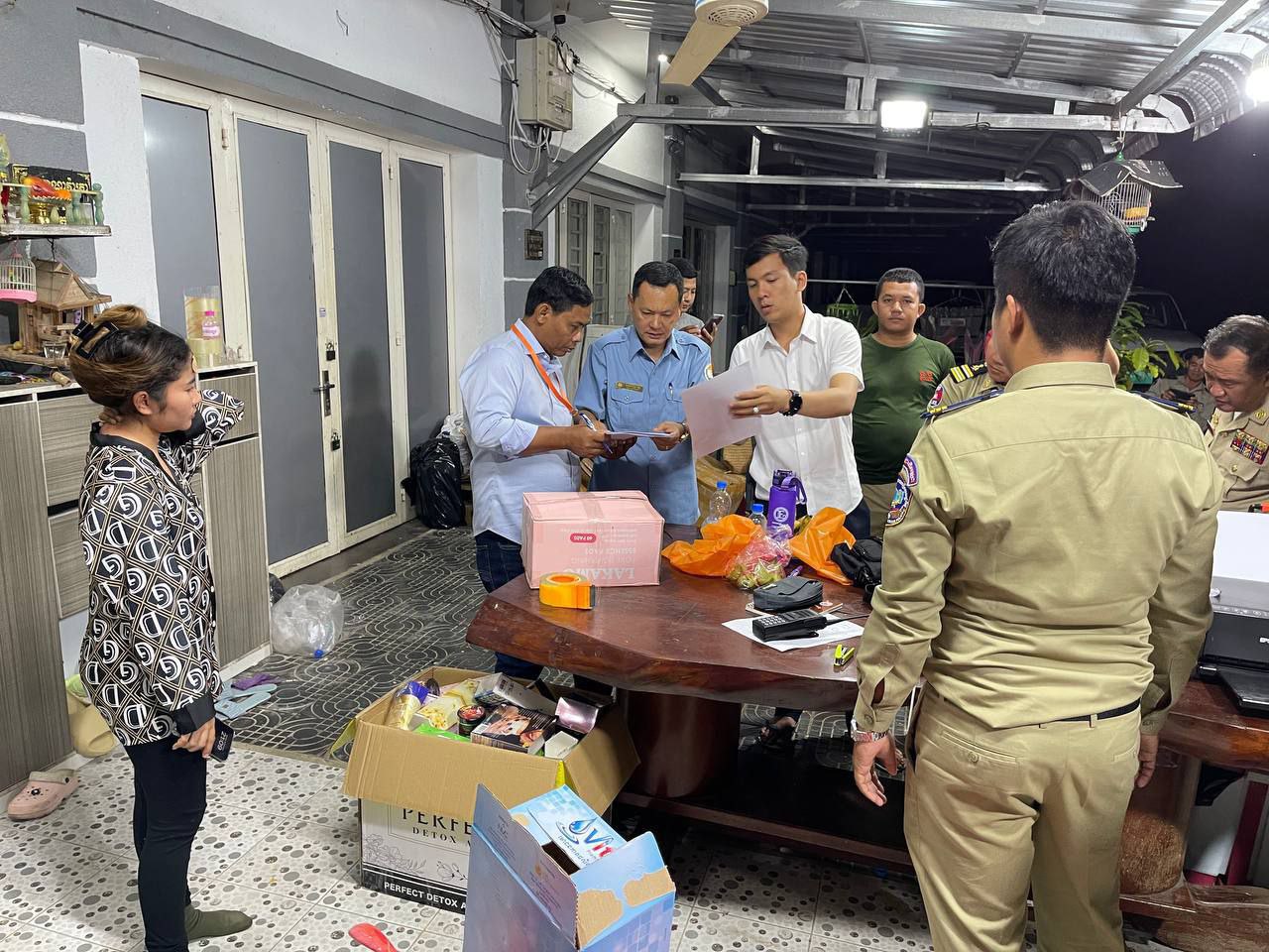 រាជធានីភ្នំពេញ៖ យោងតាមការចុះផ្សាយរបស់ នាយកដ្ឋាននគរបាលប្រឆាំងបទល្មើសសេដ្ឋកិច្ច បានឱ្យដឹងថា នាថ្ងៃទី២០ ខែវិច្ឆិកា ឆ្នាំ២០២៣ សមត្ថកិច្ចជំនាញ សហការជាមួយសមត្ថកិច្ចមូលដ្ឋាន និងមន្ត្រីជំនាញរបស់ក្រសួងសុខាភិបាល បានចុះបង្ក្រាបទីតាំងករណីនាំចូលគ្មានប្រភពច្បាស់លាស់ សន្និធិ លក់ចែកចាយផលិតផលគ្រឿងសម្អាង និងអាហារបំប៉នគ្មានច្បាប់អនុញ្ញាត នៅផ្ទះលេខ BA11+BA12 ផ្លូវបេតុង សង្កាត់ចោមចៅ២ ខណ្ឌពោធិ៍សែនជ័យ រាជធានីភ្នំពេញ ក្រោមការសម្របសម្រួលនីតិវិធីផ្ទាល់របស់លោក វង្ស សាវ៉ាត ព្រះរាជអាជ្ញារង នៃអយ្យការអមសាលាដំបូងរាជធានីភ្នំពេញ។