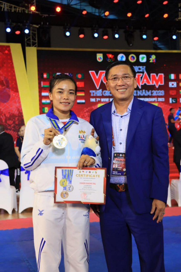 ប្រធានសហព័ន្ធរូបនេះបន្ថែមថា ការដណ្តើមបានមេដាយមាស ប្រាក់ និងសំរឹទ្ធ១៧គ្រឿង និងឈរលេខ៣បណ្តោះអាសន្ននេះ ក្នុងព្រឹត្តិការណ៍ជើងឯកពិភពលោក ឆ្នាំ២០២៣ គឺដោយសារសក្តានុពលរបស់វ៉ូវីណាមកម្ពុជា ដែលធ្លាប់ចូលរួមប្រកួតប្រជែងក្នុងការប្រកួតកម្រិតភពលោក អាស៊ី និងអាស៊ីអាគ្នេយ៍ ដែលសមត្ថភាពរបស់អត្តពលិកកម្ពុជាខិតខំប្រឹងប្រែងហ្វឹកហាត់យ៉ាងខ្លាំង និងគ្រូបង្វឹក ក្រោមការគាំទ្ររបស់ក្រសួងអប់រំ យុវជន និងកីឡា ព្រមទាំងគណៈកម្មាធិការជាតិអូឡាំពិកកម្ពុជា (NOCC) ផងដែរ៕