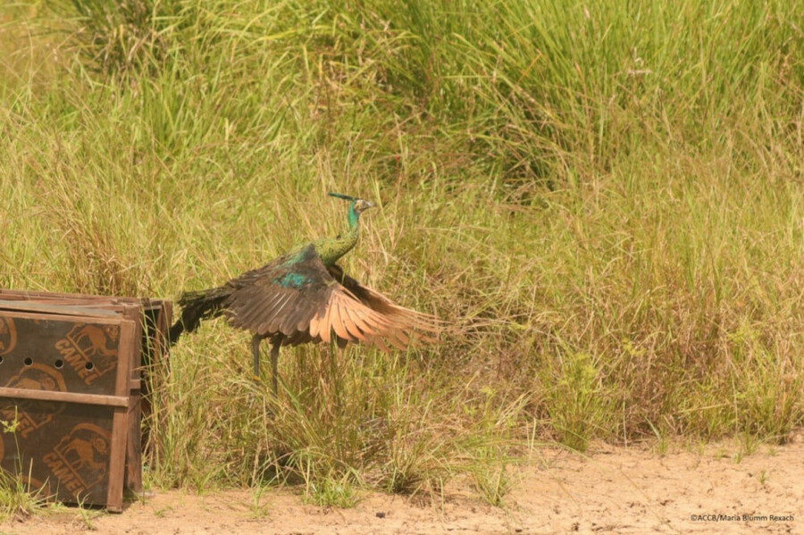 ក្នុងចំណោមសត្វស្លាបទាំង៤នេះ មានសត្វក្ងោកជិតពេញវ័យចំនួន៣ ដែលជាអម្បូរ ក្ងោកឥណ្ឌូណេស៊ី និងជាប្រភេទសត្វជិតផុតពូជនៅក្នុងសកលលោកដែលមានដើម កំណើតនៅតំបន់អាស៊ីអាគ្នេយ៍។ សត្វក្ងោកទាំងនេះបានញាស់ និងលូត លាស់ដោយ ការថែរក្សាពីមេបារបស់វានៅក្នុងមជ្ឈមណ្ឌល ACCB រហូតដល់ពេល ដែលពួកវាអាចត្រៀមខ្លួនដើម្បីរស់នៅក្នុងទីជម្រកធម្មជាតិជាមួយសត្វព្រៃផ្សេងទៀត។