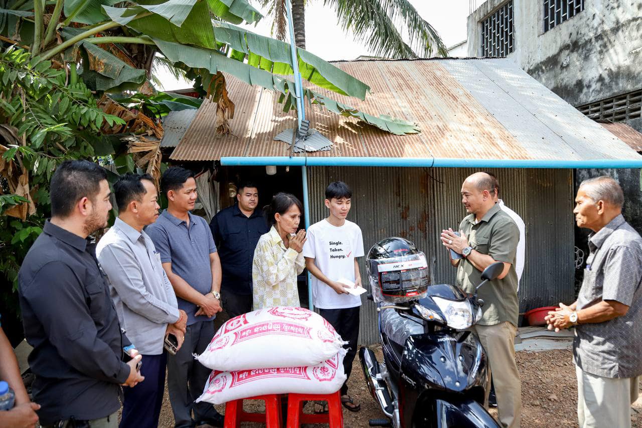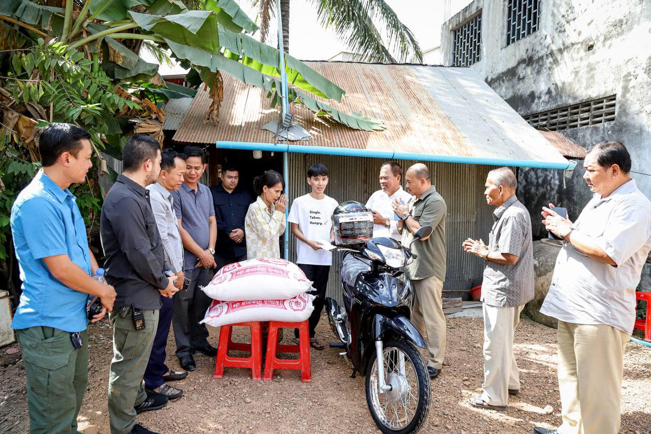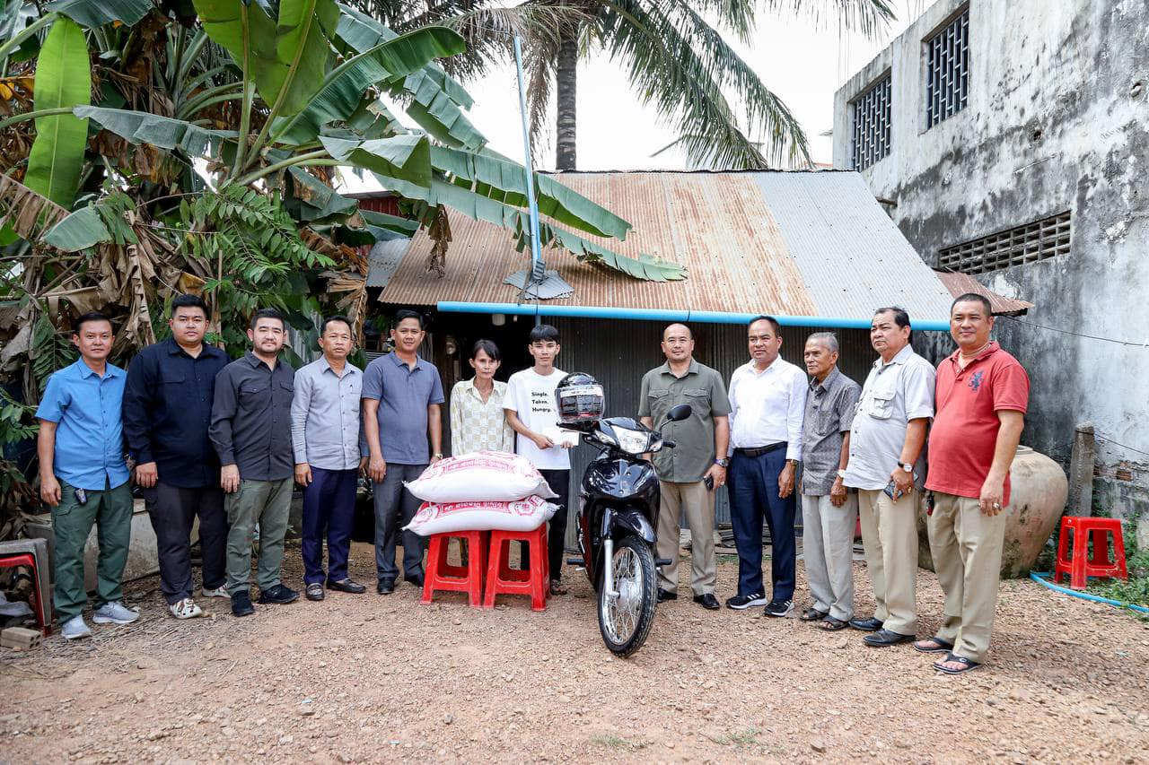 ស្នងការខេត្ដកំពត នាំយកម៉ូតូ និងអំណោយរបស់ឯកឧត្តមអភិសន្តិបណ្ឌិត ស សុខា ជូនប្អូនប្រុស ម៉ៅ កើន ជាប់និទ្ទេស A ដែលមានជីវភាពខ្សត់ខ្សោយខ្លាំង