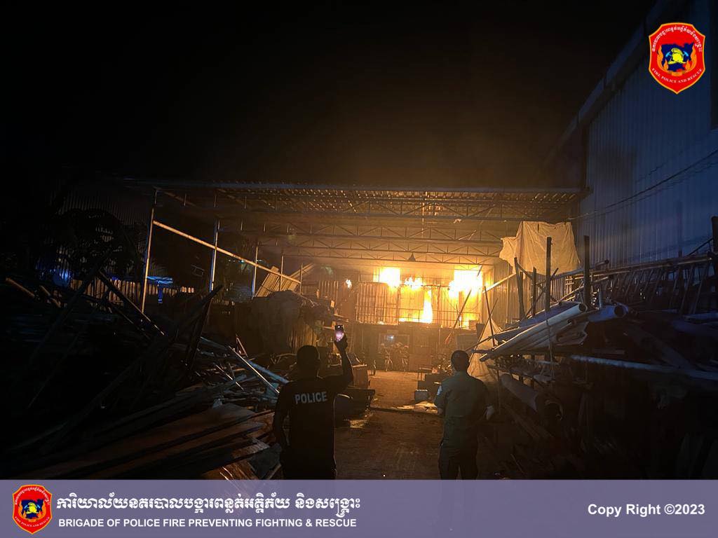 រាជធានីភ្នំពេញ៖ នៅថ្ងៃទី១២ ខែធ្នូ ឆ្នាំ២០២៣ យោងតាមការចុះផ្សាយរបស់ ការិយាល័យបង្ការពន្លត់អគ្គិភ័យ និងសង្គ្រោះ បានឱ្យដឹងថា ករណីអគ្គិភ័យបានឆាបឆេះឃ្លាំង មួយកន្លែង យ៉ាងសន្ធោសន្ធៅ ដែលធ្វើឲ្យមានការភ្ញាក់ផ្អើលយ៉ាងខ្លាំងពីសំណាក់បងប្អូនប្រជាពលរដ្ឋ។ ហេតុការណ៍នេះបានកើតឡើងនៅវេលាម៉ោង ៣និង៤៥នាទីយប់ទាបភ្លឺ ថ្ងៃទី១២ ខែធ្នូ ឆ្នាំ២០២៣ ដែលស្ថិតនៅចំណុចផ្លូវបេតុង ភូមិរោងចក្រ១ សង្កាត់គោកឃ្លាង ខណ្ឌសែនសុខ រាជធានីភ្នំពេញ។
