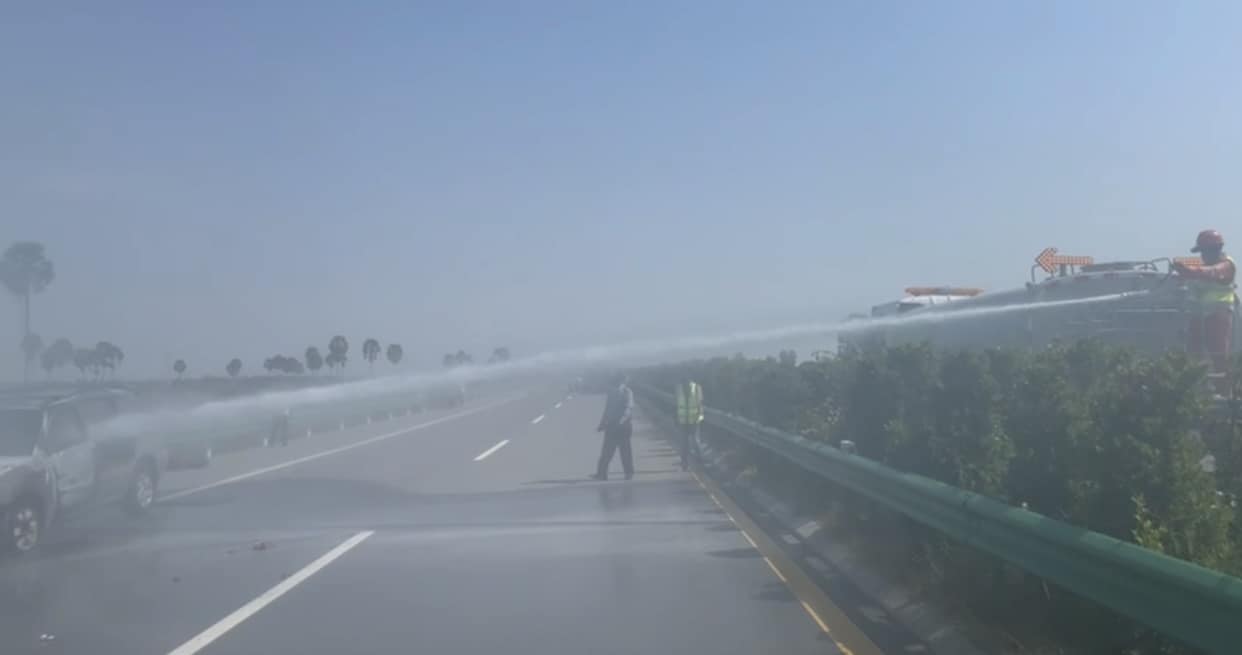 សូមបញ្ជាក់ថាក្រោយកើតហេតុ សមត្ថកិច្ចនិងក្រុមការងារផ្លូវល្បឿនលឿនបានជួយអន្តរាគមន៍ពន្លត់ដែរ ប៉ុន្តែដោយសារស្ថានភាពភ្លើងឆេះខ្លាំងមិនអាចជួយបាន។ ទោះជាយ៉ាងនេះក្តី ក្រៅពីខូចខាតរថយន្តនិងសម្ភារក្នុងរថយន្ត មិនមានមនុស្សរងគ្រោះថ្នាក់នោះទេ៕