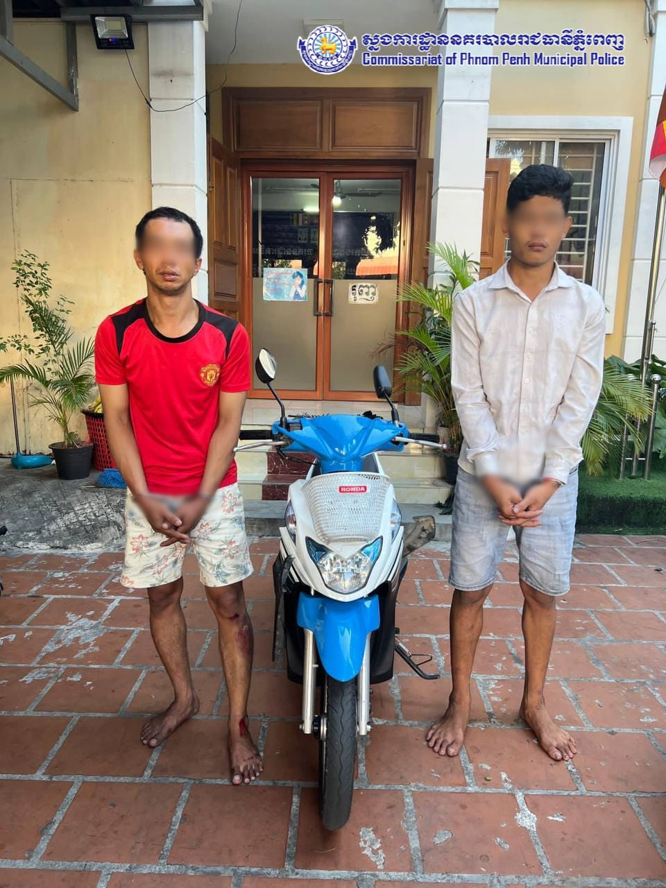 ជនសង្ស័យ ២នាក់ ពាក់ព័ន្ធករណីឆក់ទូរស័ព្ទដៃ ត្រូវកម្លាំងអធិការដ្ឋាននគរបាលខណ្ឌបឹងកេងកង ឃាត់ខ្លួន