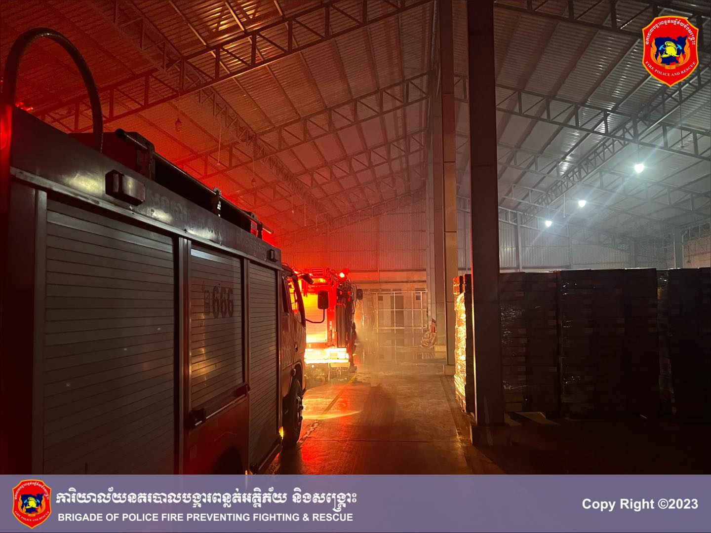 រាជធានីភ្នំពេញ៖ នៅថ្ងៃទី១៨ ខែធ្នូ ឆ្នាំ២០២៣ យោងតាមការចុះផ្សាយរបស់ ការិយាល័យបង្ការពន្លត់អគ្គិភ័យ និងសង្គ្រោះ បានឱ្យដឹងថា ករណីអគ្គិភ័យបានឆាបឆេះរោងចក្រ JUNTY BRITHING ផលិតអំពូល មួយកន្លែងយ៉ាងសន្ធោសន្ធៅ ដែលធ្វើឲ្យមានការភ្ញាក់ផ្អើលយ៉ាងខ្លាំងពីសំណាក់បងប្អូនប្រជាពលរដ្ឋ។ ហេតុការណ៍នេះបានកើតឡើងនៅវេលាម៉ោង ៦និង២០នាទីយប់ ថ្ងៃទី១៧ ខែធ្នូ ឆ្នាំ២០២៣ ដែលស្ថិតនៅចំណុចរោងចក្រ ភូមិកប់គង សង្កាត់ចោមចៅទី២ ខណ្ឌពោធិ៍សែនជ័យ រាជធានីភ្នំពេញ។