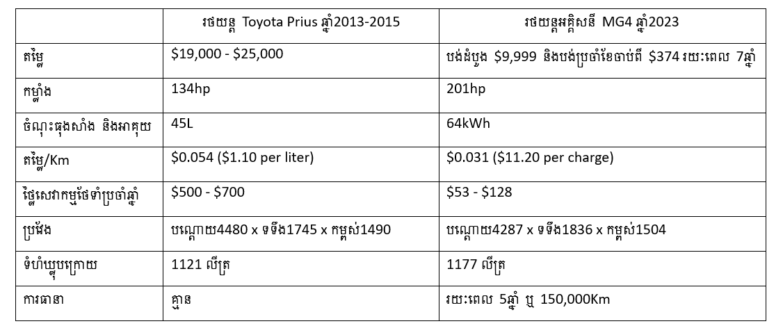 តើរថយន្តហាយប្រ៊ីតមួយទឹកមានតម្លៃថោកជាងរថយន្តអគ្គិសនីថ្មីដែរឬទេ?
