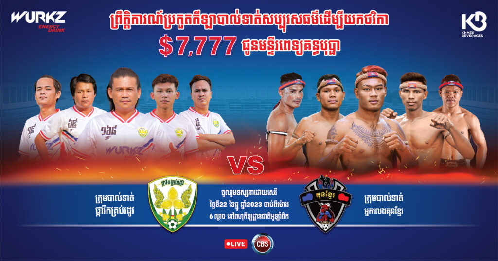 ប្លែកទៀតហើយលើកនេះ គុនខ្មែរ ប៉ះ ផ្ការីកគ្រប់រដូវ ប្រកួតបាល់ទាត់ ដើម្បីយក ៧,៧៧៧ដុល្លារ ពីភេសជ្ជៈប៉ូវកម្លាំង វើក ជួយសង្គម