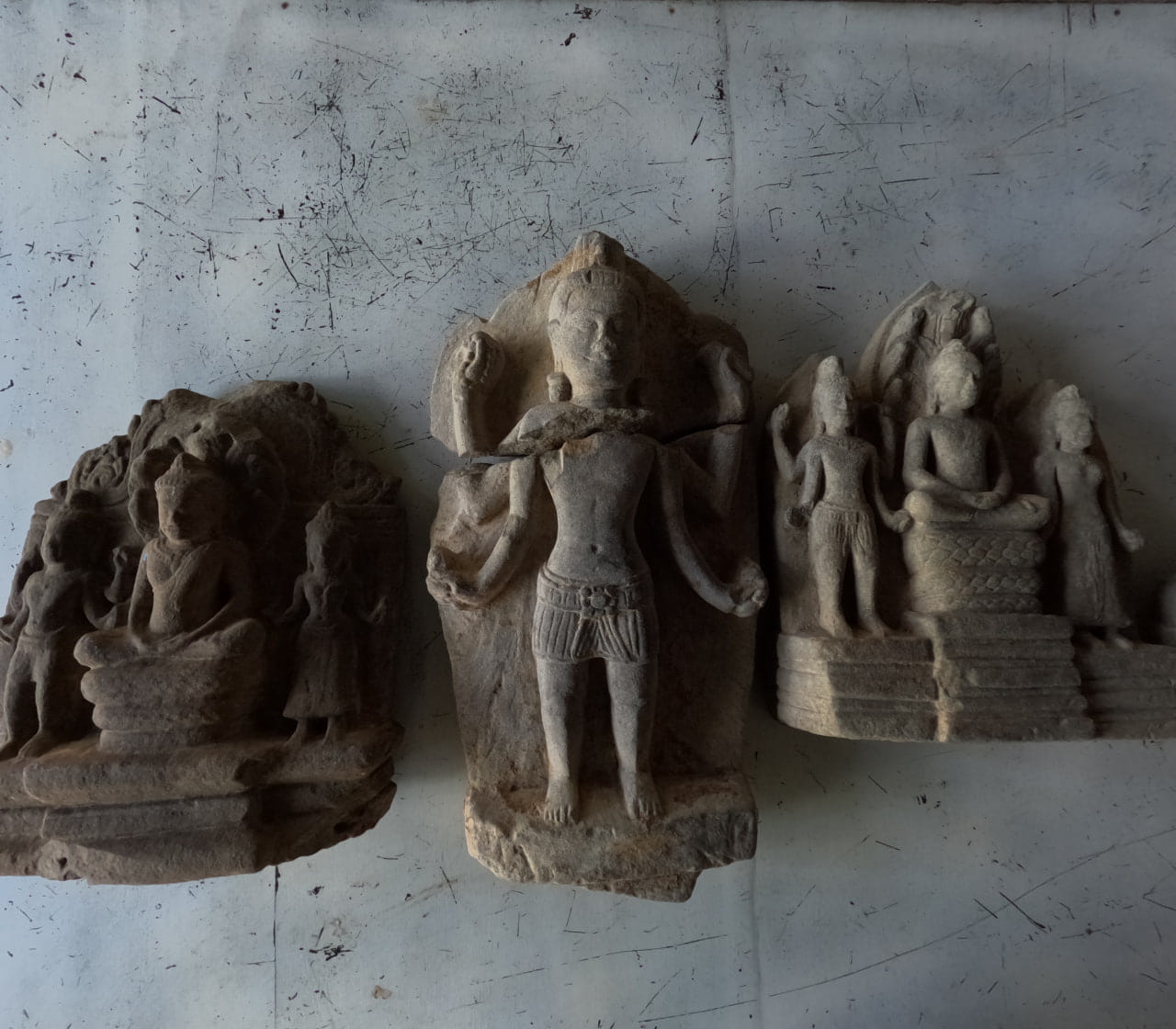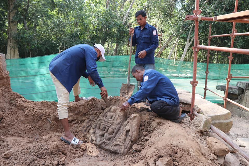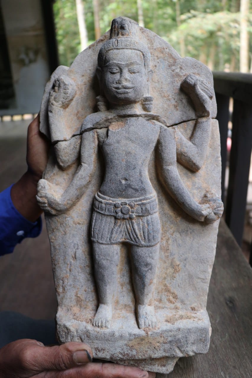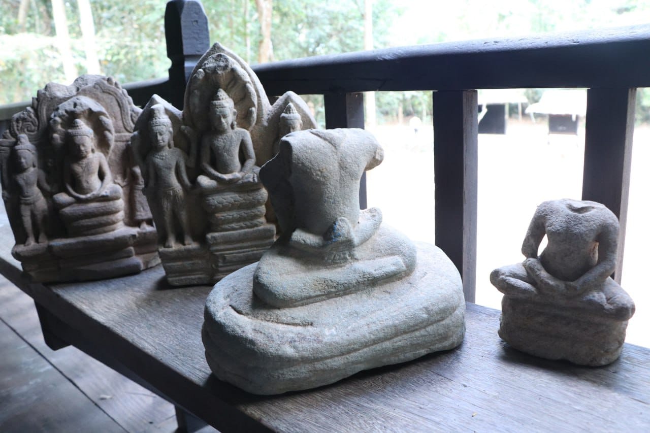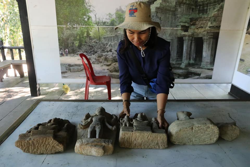 បុរាណវិទូនៃនាយកដ្ឋានអភិរក្សប្រាសាទ និងបុរាណវិទ្យារបស់អាជ្ញាធរជាតិអប្សរា អ្នកស្រី នេត ស៊ីមន មានប្រសាសន៍ថា ចម្លាក់ថ្មបុរាណដែលគេប្រទះឃើញនោះ មានដូចជា រូបព្រះពុទ្ធគង់ភ្នែនប្រក់នាគចំនួន២ រូបលោកកេស្វរៈចំនួន១ រូបព្រះពុទ្ធគង់ភ្នែនប្រក់នាគបាក់ព្រះកេសទម្រង់សមាធិ និងបាក់ព្រះហស្តទាំងសងចំនួន២ និងថ្មកំពូលហោជាង ដែលមានចម្លាក់រូបព្រះពុទ្ធគង់ភ្នែន មានទេពទ្រពីក្រោម១ផ្ទាំងទៀត។