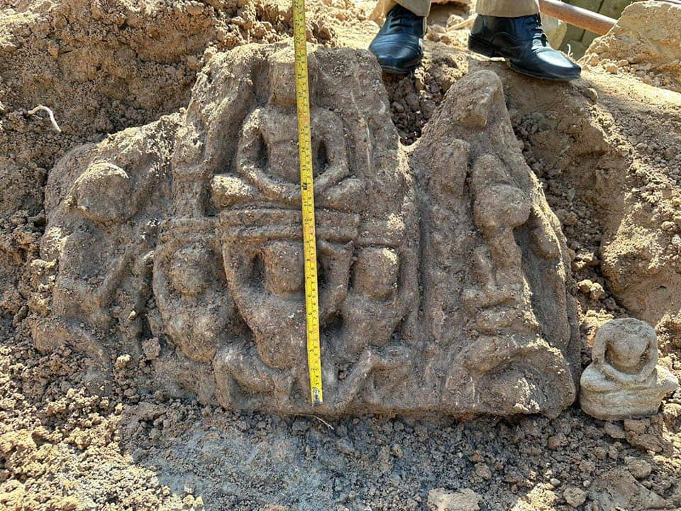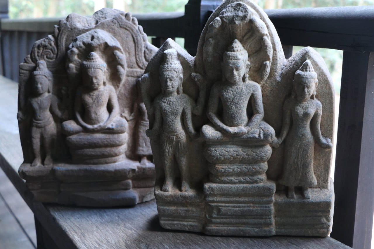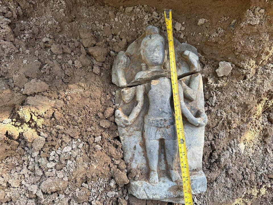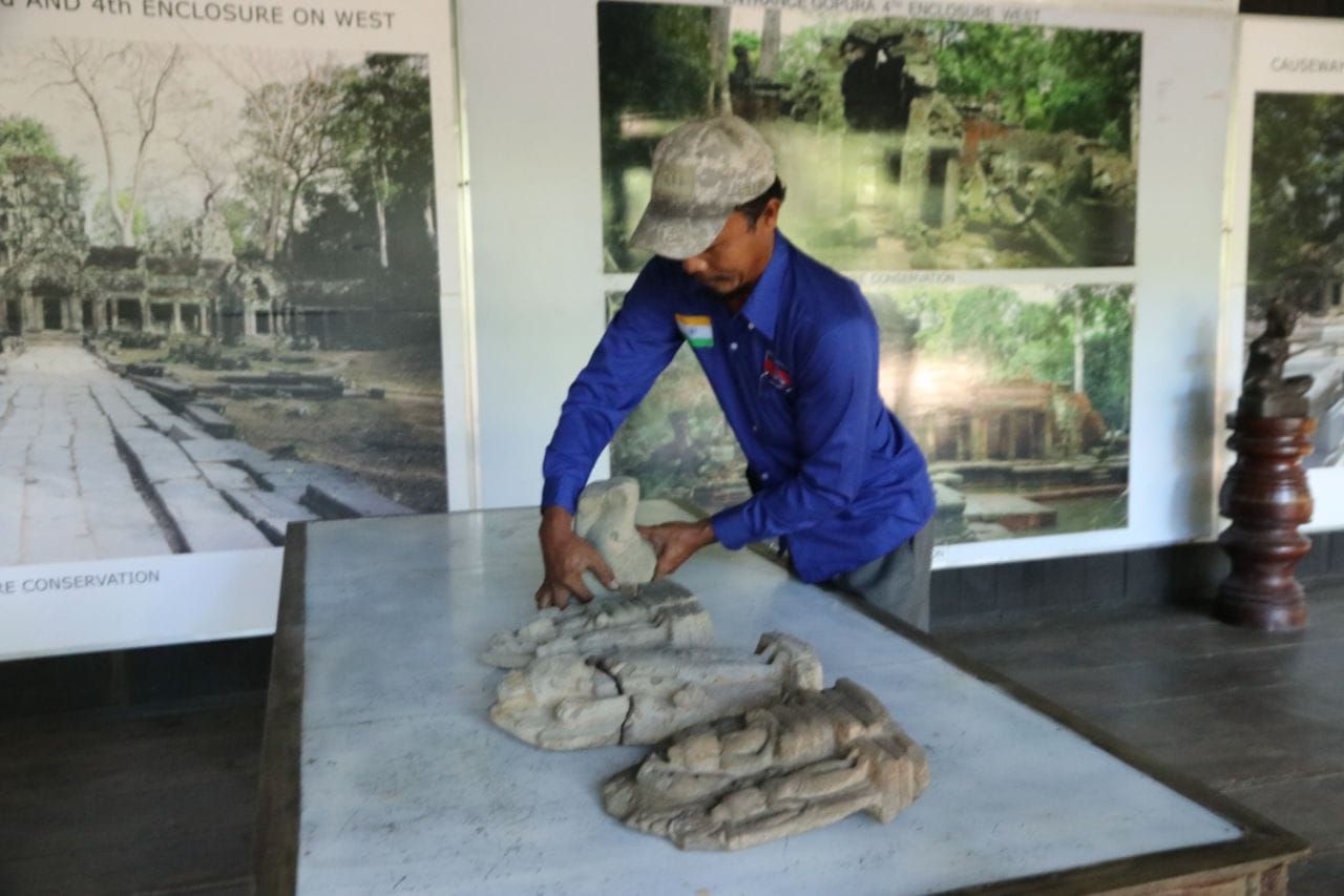 បុរាណវិទូនៃនាយកដ្ឋានអភិរក្សប្រាសាទ និងបុរាណវិទ្យារបស់អាជ្ញាធរជាតិអប្សរា អ្នកស្រី នេត ស៊ីមន មានប្រសាសន៍ថា ចម្លាក់ថ្មបុរាណដែលគេប្រទះឃើញនោះ មានដូចជា រូបព្រះពុទ្ធគង់ភ្នែនប្រក់នាគចំនួន២ រូបលោកកេស្វរៈចំនួន១ រូបព្រះពុទ្ធគង់ភ្នែនប្រក់នាគបាក់ព្រះកេសទម្រង់សមាធិ និងបាក់ព្រះហស្តទាំងសងចំនួន២ និងថ្មកំពូលហោជាង ដែលមានចម្លាក់រូបព្រះពុទ្ធគង់ភ្នែន មានទេពទ្រពីក្រោម១ផ្ទាំងទៀត។