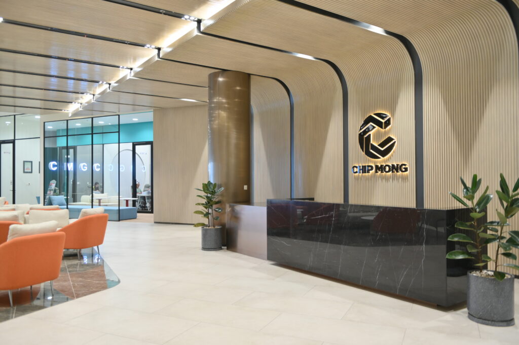 ការិយាល័យក្រុមហ៊ុន ជីប ម៉ុង ធំទូលាយ រចនាបែបទំនើប ស្តង់ដារអន្តរជាតិ និងបំពាក់ជាមួយនឹងបច្ចេកវិទ្យាថ្មីៗទាន់សម័យ ចំណែកកន្លែងអង្គុយធ្វើការសម្រាប់បុគ្គលិកនៅក្រុមហ៊ុន ជីប ម៉ុង សំបូរបែបមានទាំងកន្លែងអង្គុយធ្វើការរួម ដើម្បីឲ្យបុគ្គលិកងាយស្រួលក្នុងការពិភាក្សាគ្នាភ្លាមៗ ក្រៅពីនេះក៏មានជាបន្ទប់តូចៗជាបន្ទប់ឯកជន សម្រាប់បុគ្គលិកដែលចង់ធ្វើការបែបផ្ទាល់ខ្លួនផងដែរ។
