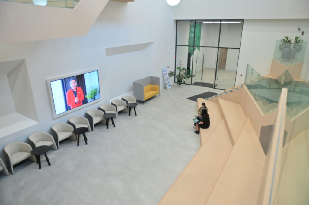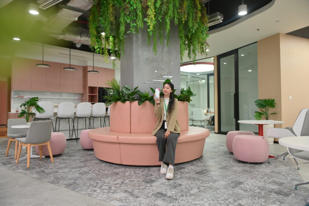 អ្វីដែលមិនអាចរំលងបាននោះបរិយាកាសកន្លែងអង្គុយធ្វើការនៅក្នុងក្រុមហ៊ុន មានការតុបតែងចំរុះពណ៌ និងហុំព័ទ្ធជាមួយធម្មជាតិ ដោយមានសួនដាំផ្កាលម្អ ផ្សារភ្ជាប់ជាមួយនឹងធម្មជាតិ ចំនុចទាំងអស់នេះ ក្រុមហ៊ុនបានគិតគូរច្បាស់ថាជារឿងសំខាន់មួយនៅក្នុងជំនួយដល់អារម្មណ៍នៅក្នុងការធ្វើការឱ្យបុគ្គលិកដែលធ្វើការរហូតដល់ពេលល្ងាច នឹងបានគយគន់ថ្ងៃលិចពន្លឺស្រទន់ ធ្វើឱ្យអារម្មណ៍តប់ប្រមល់បាត់អស់តែម្តង។