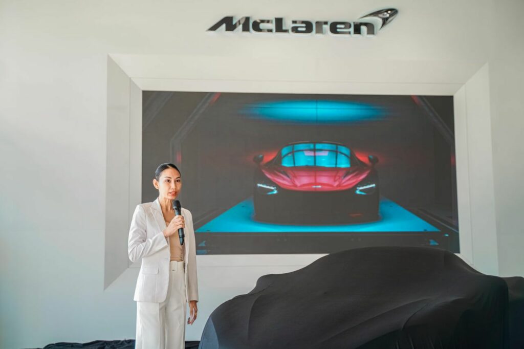 总经理 Hun Leng Lai Heang 女士简要介绍了迈凯伦 750S 的外观、性能以及生产和技术的豪华程度,体现了迈凯伦车辆的工程、设计和创新。