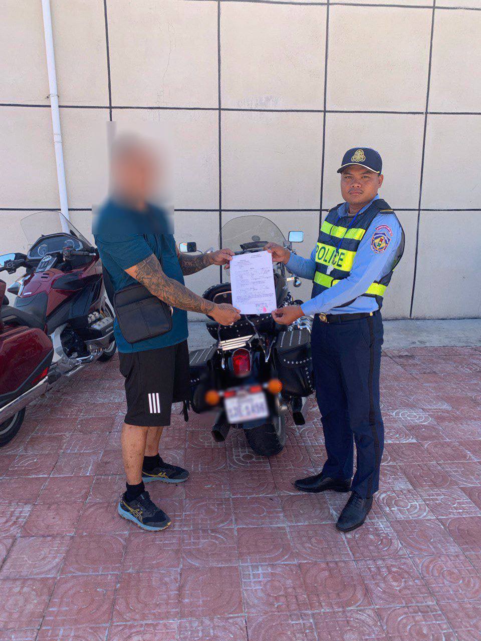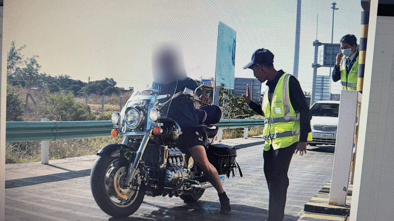 បុរសជនជាតិស្វីសម្នាក់ បើកបរម៉ូតូធំនៅលើផ្លូវល្បឿនលឿន ដោយលើកជើងដាក់លើដៃចង្កូត ត្រូវបានសមត្ថកិច្ចហៅមកអប់រំ ផាកពិន័យ និងចុះកិច្ចសន្យា