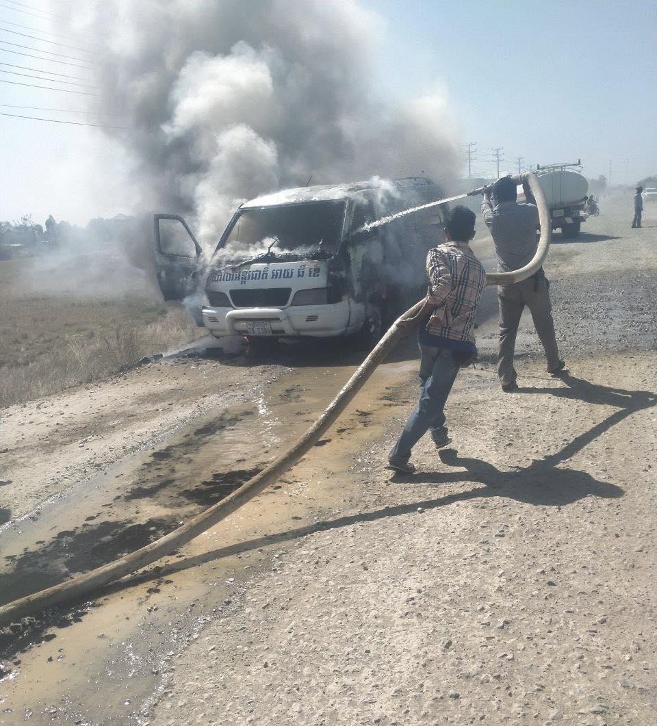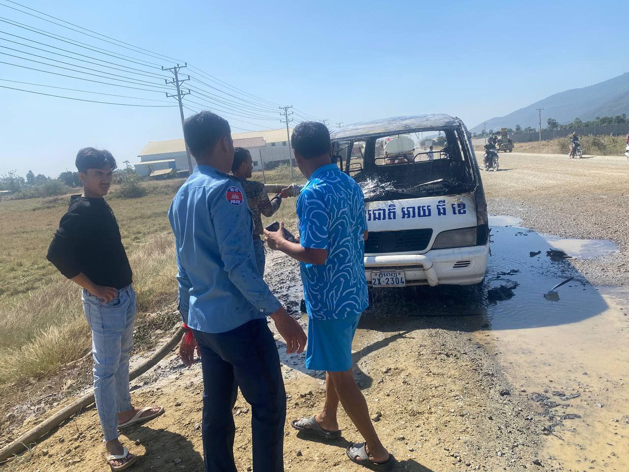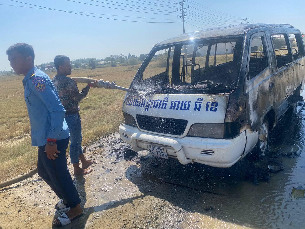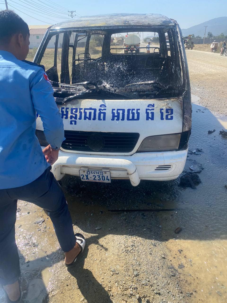 ព័ត៌មានបឋម៖ ឆេះរថយន្ដដឹកសិស្សនៅពេលដឹកសិស្សចេញពីសាលារៀនឯកជនមួយ ស្ថិតនៅផ្លូវជាតិលេខ៤១ ស្រុកគងពិសី