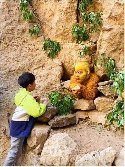 បើយោងតាមការចុះផ្សាយរបស់បណ្តាញសារព័ត៌មាន The Strait Time បានបញ្ជាក់ថា ស្តេចស្វាអ៊ូខុងខាងលើនេះបានបង្ហាញវត្តមាននៅក្នុងតំបន់ទេសចរណ៍ Taihang Wuzhishan Scenic Area ដែលជាតំបន់ភ្នំស្ថិតនៅក្នុងខេត្ត Hebei ភាគខាងជើងប្រទេសចិន ហើយអ្វីដែលកំពុងតែសម្តែងនោះ គឺជាឈុតឆាកមួយនៅរឿង “សេ្តចស្វាស៊ុនអ៊ូខុង” ត្រង់ចំណុចដែលអ៊ូខុងត្រូវជាប់ក្រោមភ្នំសង្កត់អស់រយៈពេលរាប់រយឆ្នាំ។