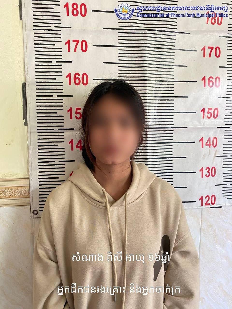 – ទី៥៖ ឈ្មោះ សំណាង ពិសី ភេទស្រី អាយុ១៦ឆ្នាំ មុខរបរ សិស្ស មានទីលំនៅភូមិព្រៃកីខ សង្កាត់ពងទឹក ខណ្ឌដង្កោ។ (ជាអ្នកដឹកជនរងគ្រោះ និងជាអ្នកចាក់រុក)